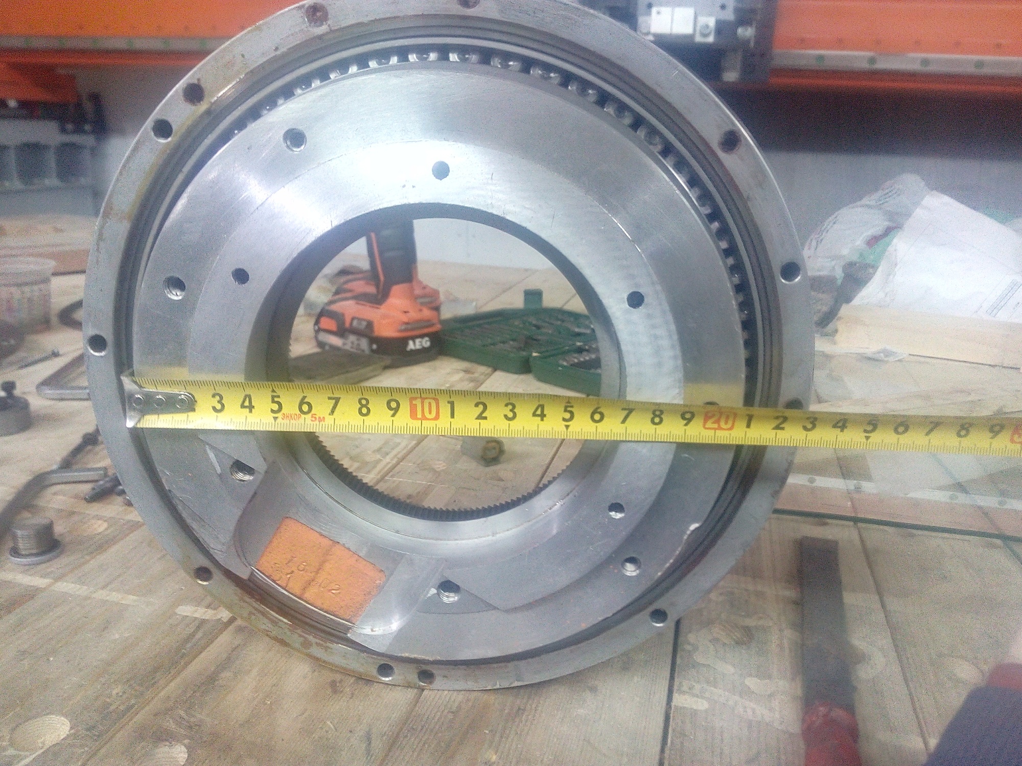 В качестве основы поворотной головки было бы правильнее использовать готовую УДГ, но за неимением таковой решил использовать редуктор от промышленного робота, купленный достаточно давно под один из нереализованных проектов. Он долгое время лежал на полке и пылился, а попытки его продать или обменять не увенчались успехом. Корпус редуктора выполнен в виде алюминиевой отливки, выходной вал данного редуктора установлен в корпус на достаточно большом роликовом подшипнике с возможностью установки преднатяга данного подшипника, корпус выполнен таким образом что имеет достаточно точный угол 90 градусов между основанием и осью вала. Сам редуктор является волновым с передаточным числом 1:80. Для привода планирую использовать шаговый двигатель габарита 86x114, который в будущем будет заменен на серву. Никакой информации по данному редуктору найти не удалось, единственное что знаю так это то, то он приводился в движение коллекторным двигателем мощностью 4кВт и имел максимальную скорость вращения 4000 об/мин. Думаю для моих задач его будет вполне достаточно.