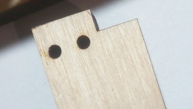 Созвонился сегодя с теми кто делал. Как объяснили подобные отверстия, говорят что при резке фанера горит, и горит нераномерно, поэтому так получается что отверстия немного выгорают, причем это может быть произвольно в зависимости от листа фанеры.