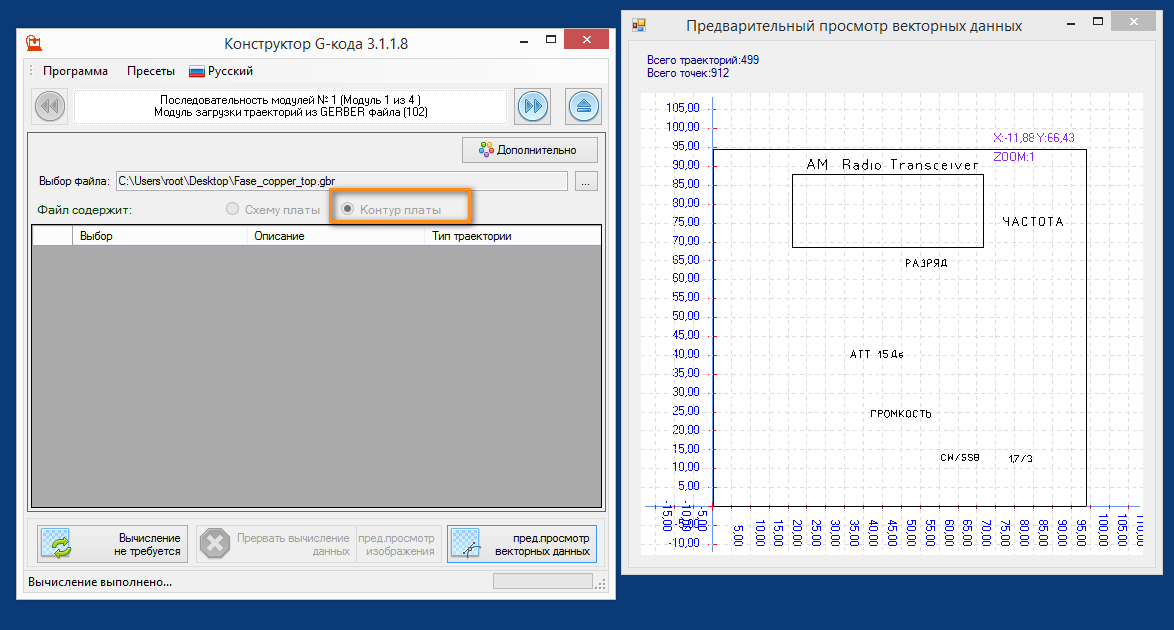 замена гравера на фрезу и вырезка контура за несколько проходов.