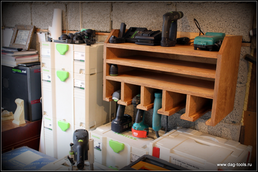 И как быть с инструментом, отличающимся по габаритам в два-три раза. А если перфоратор, то куда его?, хотя не на каждый день. А циркулярочку? Можно разные полки по глубине сделать.