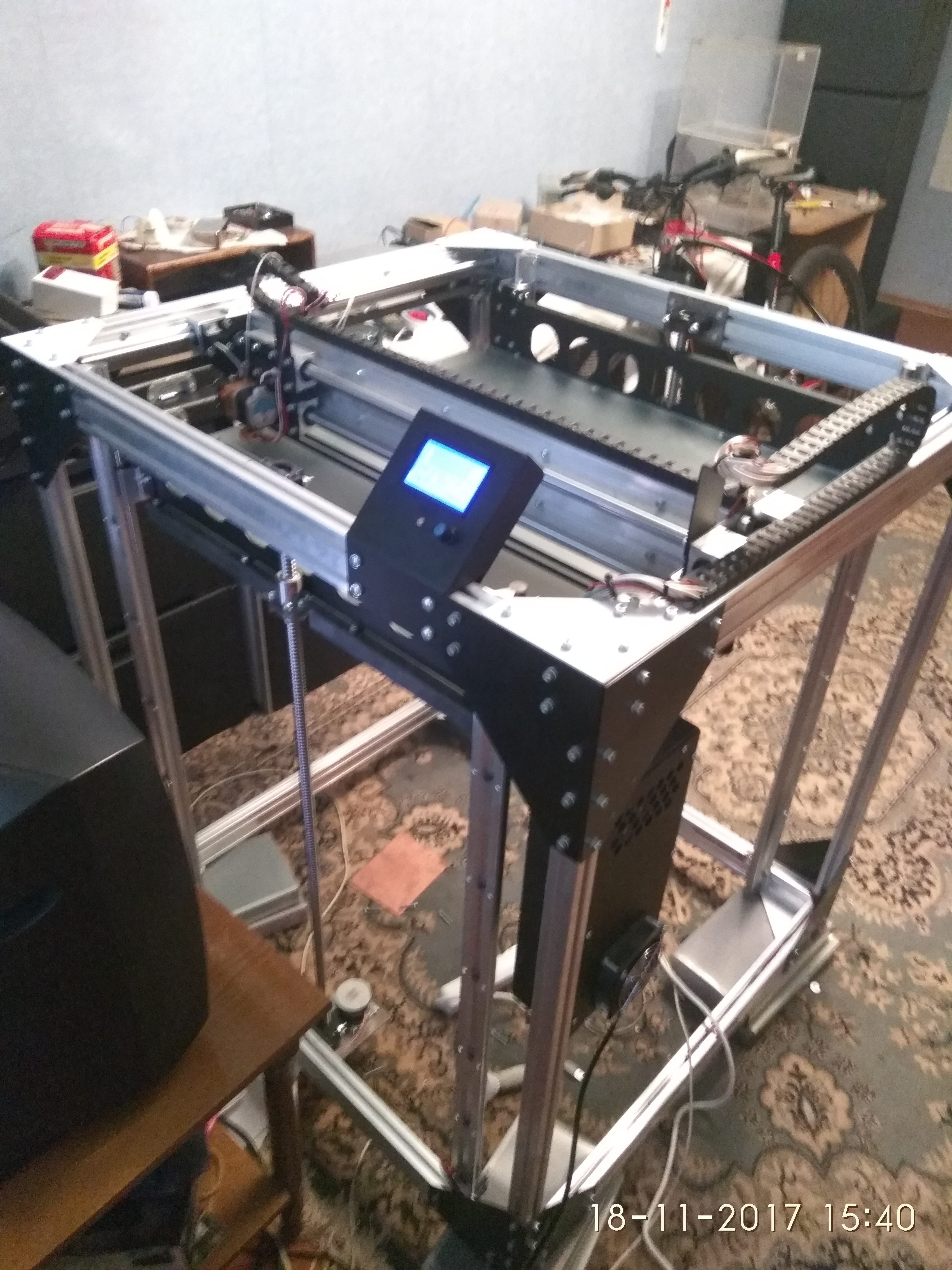 Описание станка, основные характеристики: Профиль 30й, направляющие SBR16, привод осей X и Y ремень GT2 10mm, оси Z швп 1605, движки все NEMA23