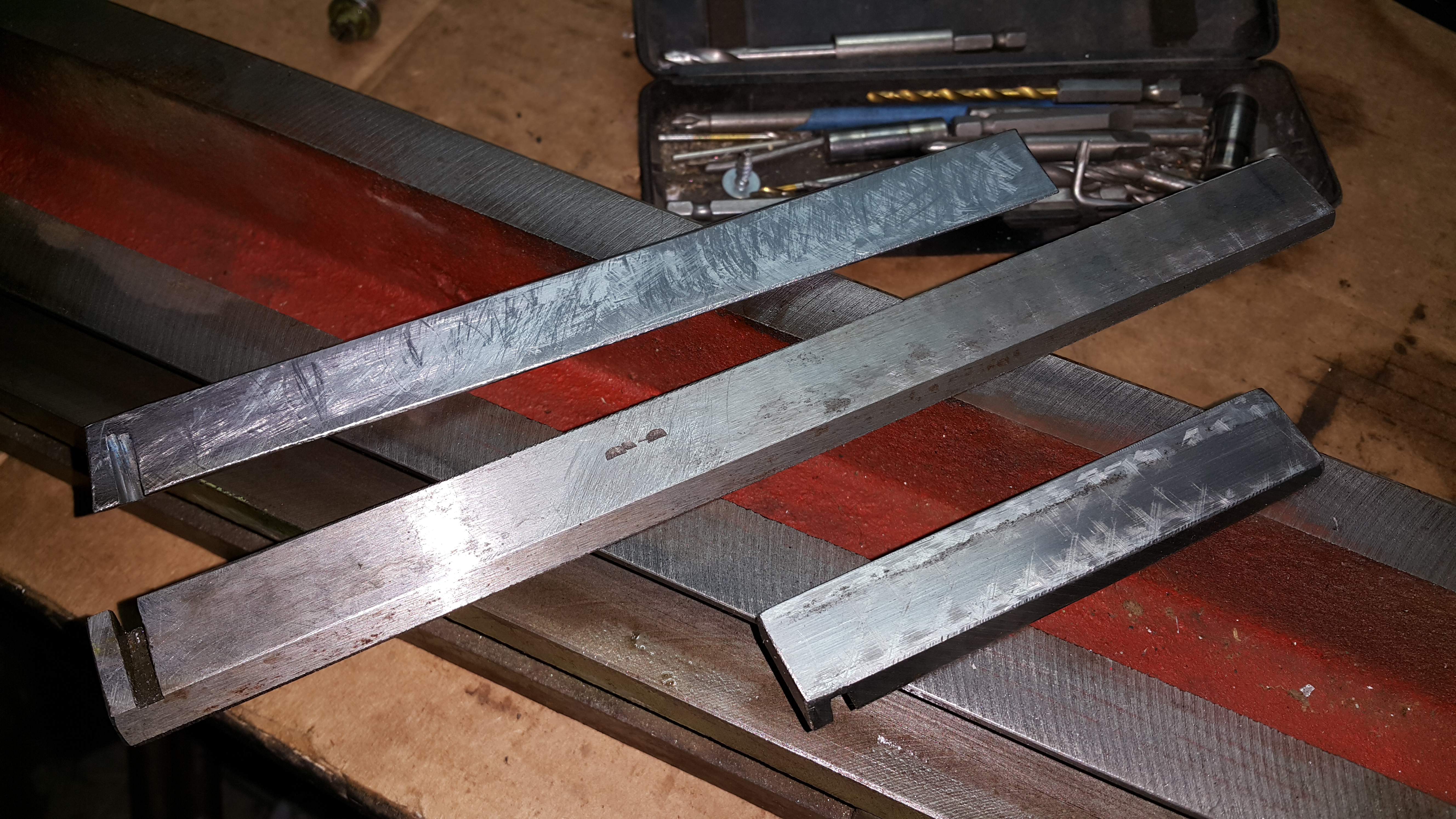 Далее взялся за изготовление недостающего клина консоли. Отфрезеровал его из сталь 20. Пришабрил. Консоль ходит достаточно мягко без заеданий.