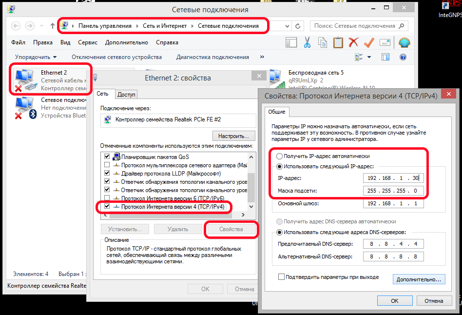 Поэтому на компе в настройках Ethernet соединения нужно вбить тоже статичный адрес этой же сети.