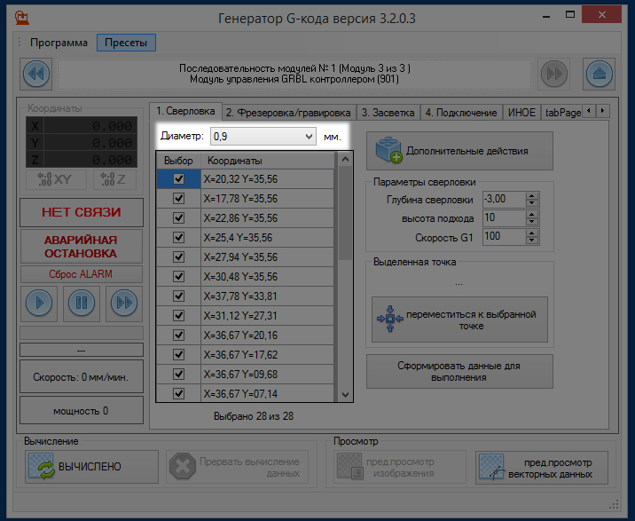 wip85 писал(а):Но сверловка не работает. Пишет нет данных