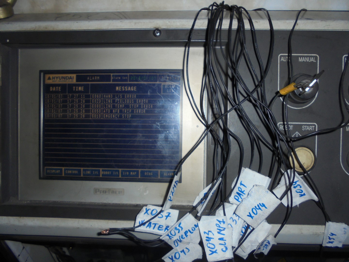 Включили ящик, все за сверкало, замигало вроде работает. Пошевелили осями вроде двигается. Для того чтобы в ручную шевелить осями: ключек должен быть повернут как на фото и рукой нужно жмакать большую кнопку под пультом. Начали крутить поворотные и все не работает