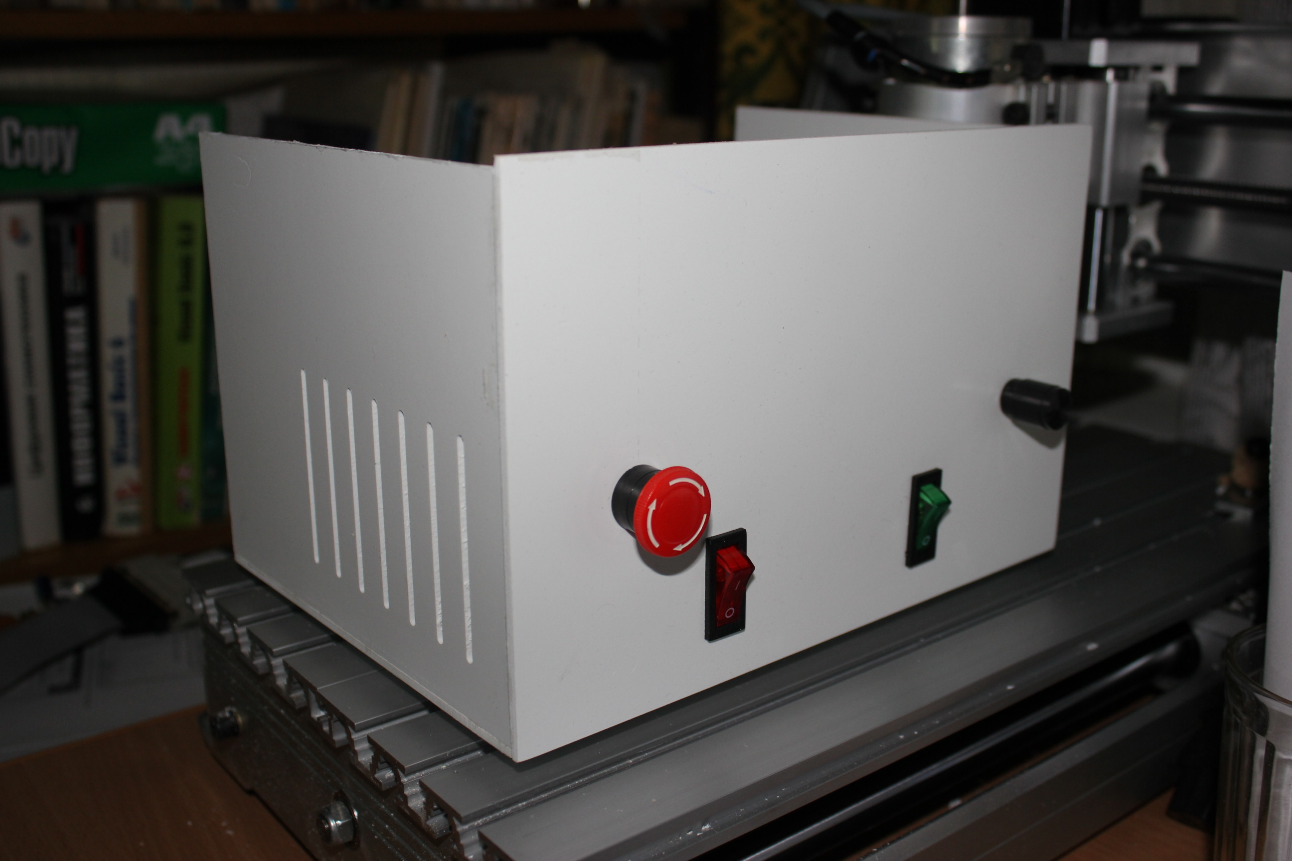 Вот в принципе в основном для этого брался станок. Первый корпус станок сделал для себя родимого (точнее, для своего контроллера). Правда, еще не доделан - осталось вырезать заднюю панель. Родной корпус безжалостно выкинут. В новой задней панели вырежу еще одно окно для второго разъема DB-25 (концевики и probe). Для этого и решил сделать новый корпус. Накосячил правда с размерами, в итоге получилось не совсем так, как хотелось бы, в частности, боковые панели высотой 150, а надо было 120. Ну и еще пара-тройка мелких косяков. Но поскольку со станка уже снял, отрезать лишнее ровно не получилось бы, а переделывать было уже в лом, решил, что запас карман не тянет, пусть внутри будет место, раз уж так получилось. Получилось гораздо лучше, чем вышло бы вручную резаком кроить панели по линейке, но самое главное - вырезы в панелях, хоть круглые, хоть прямоугольные, хоть сложной формы больше не проблема :)
