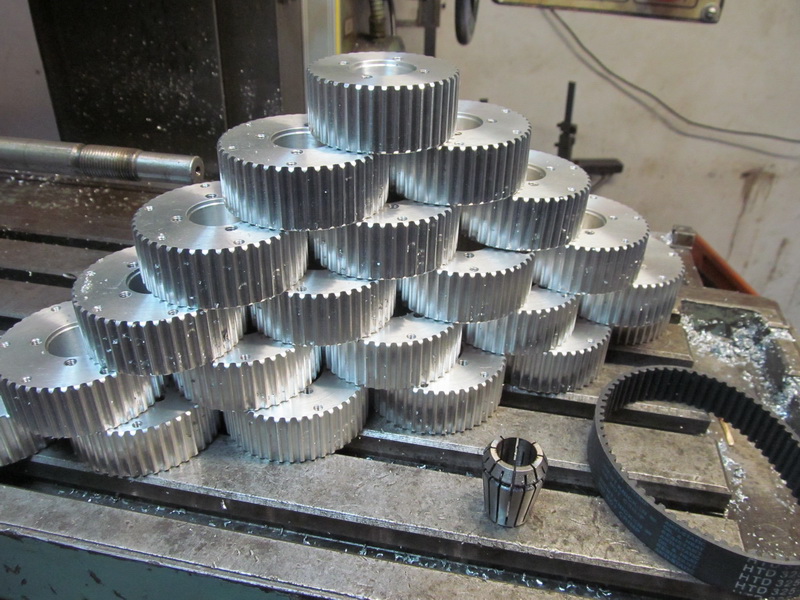 Валил однозубкой, не смотря на уверенную подачу 250мм/мин фрезеровка одной штуки занимат около 20мин. Долго, при наличии спроса на подобную продукцию (шкивы) нужно покупать червячную фрезу и валить в режиме забореза, благо оЧПУшеная УДГ позволяет это делать