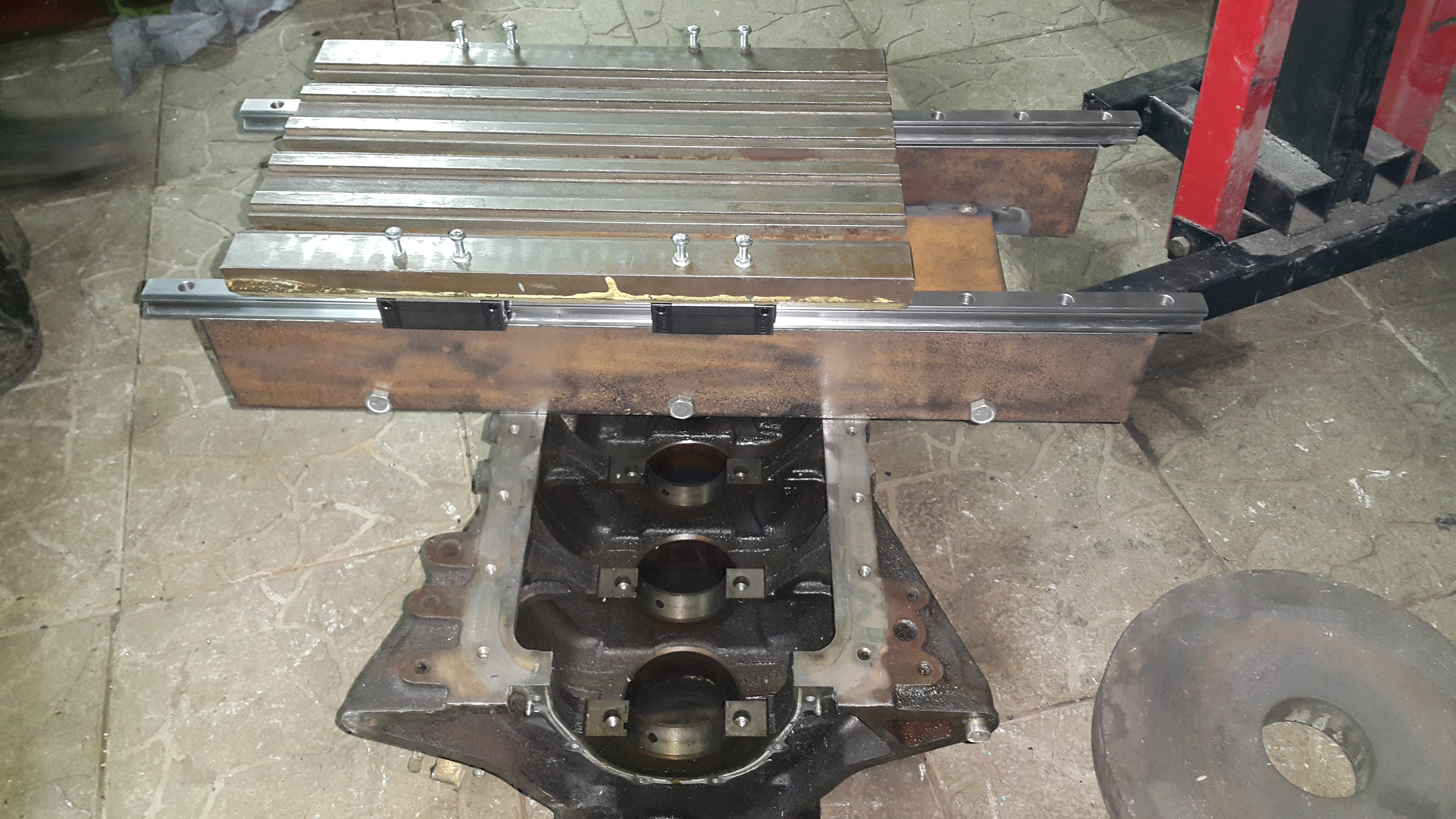 Блоки так сказать с пола. Чугунина крепкая, нагрузки держит не малые, плюсом они уже состарены так сказать. Куча крепежных отверстий и баз, причем все достаточно точно, в сотки укладывается. Почему не использовать это? А станину купи, привези, отфрезеруй.