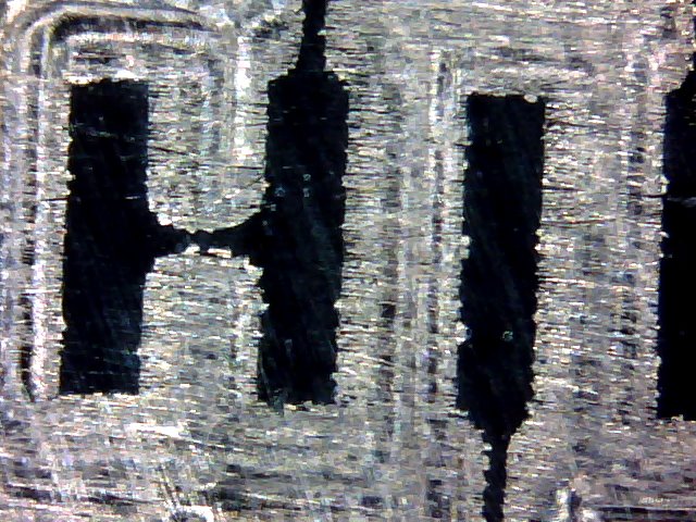 Огрехи, как уже сказал - на моей совести: несоблюдение технологии травления и, кроме того, совершенно намеренное оставление участка прокраски очевидно тонким (металл просвечиваал через синеву) - поскольку это был первый эксперимент, то решил проверить границы допусков.