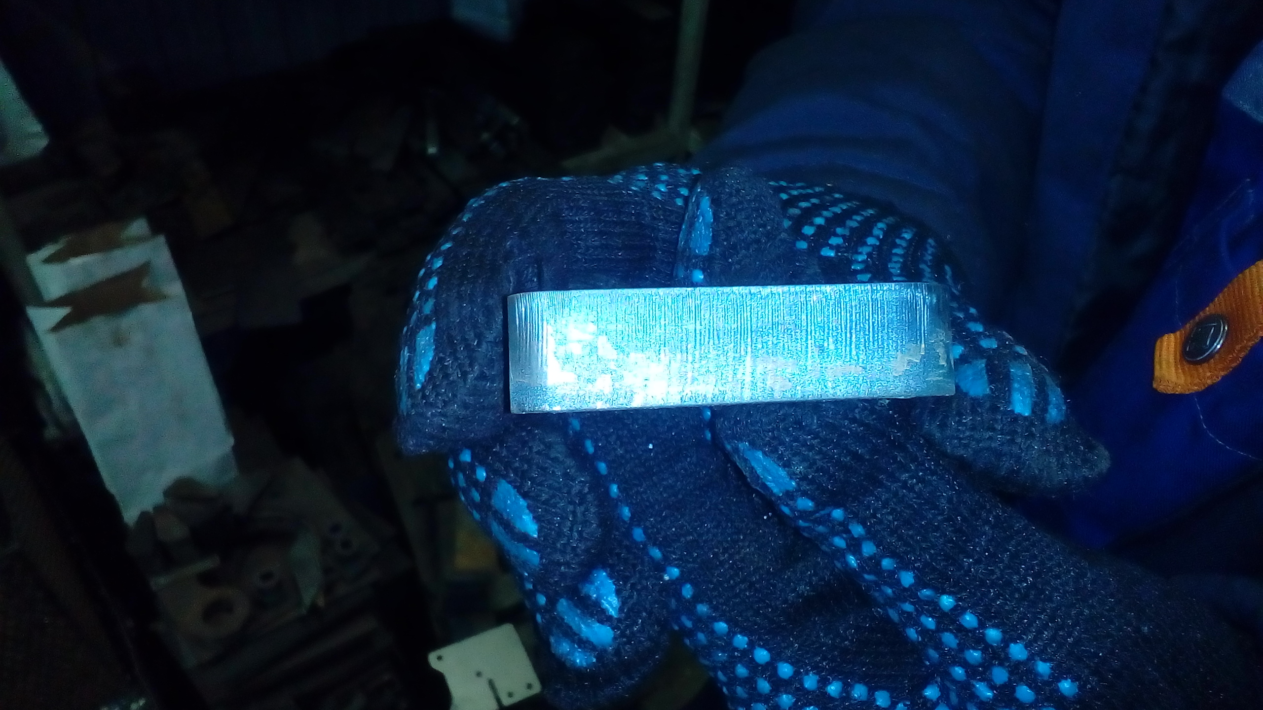 В начале скорость реза была 500 мм/мин.  На фото начало реза слева направо. (То есть в начале реза зазор 1 мм. В середине 2 мм)