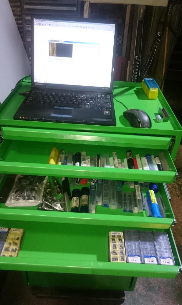 С пол года назад я где-то на форуме (нинашол) выкладывал фотки тумбы для фрезерной оснастки. По мотивам той тумбы сделана новая тумба для токарной оснастки. По самой тумбе была полностью переделана конструкция, для большей технологичности и упрощения сборки. И устранены мелкие недочеты, которые выявились по результатам сборки и эксплуатации первой конструкции.