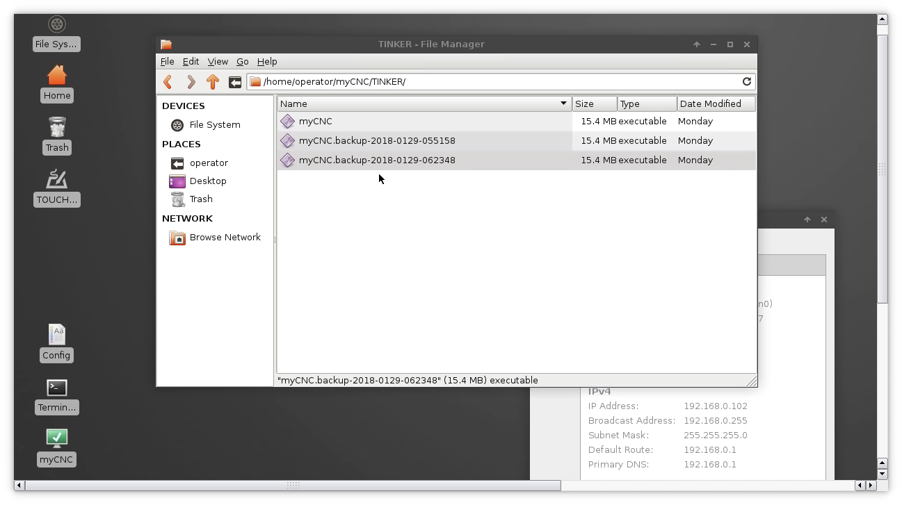 Все предыдущие версии сохранены в том же каталоге, что и основная программа ("myCNC/TINKER" для TinkerBoard)