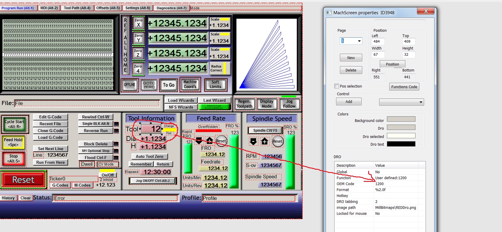 OldTool = GetOEMDRO(1200) 'Tool In spindle DRO You must add this to your settings screen