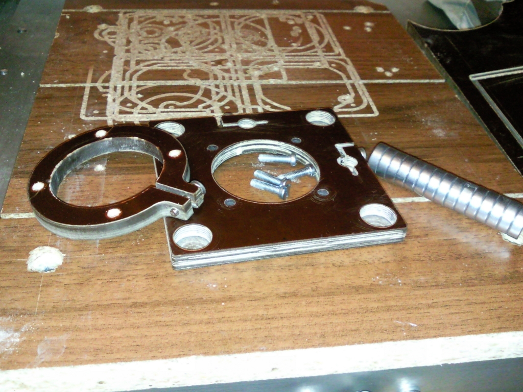 Вырезанные детальки из текстолита толщиной 8мм, рядом магниты, которые будут держать насадки: Всё в собранном виде: Стоит на станке и светится: