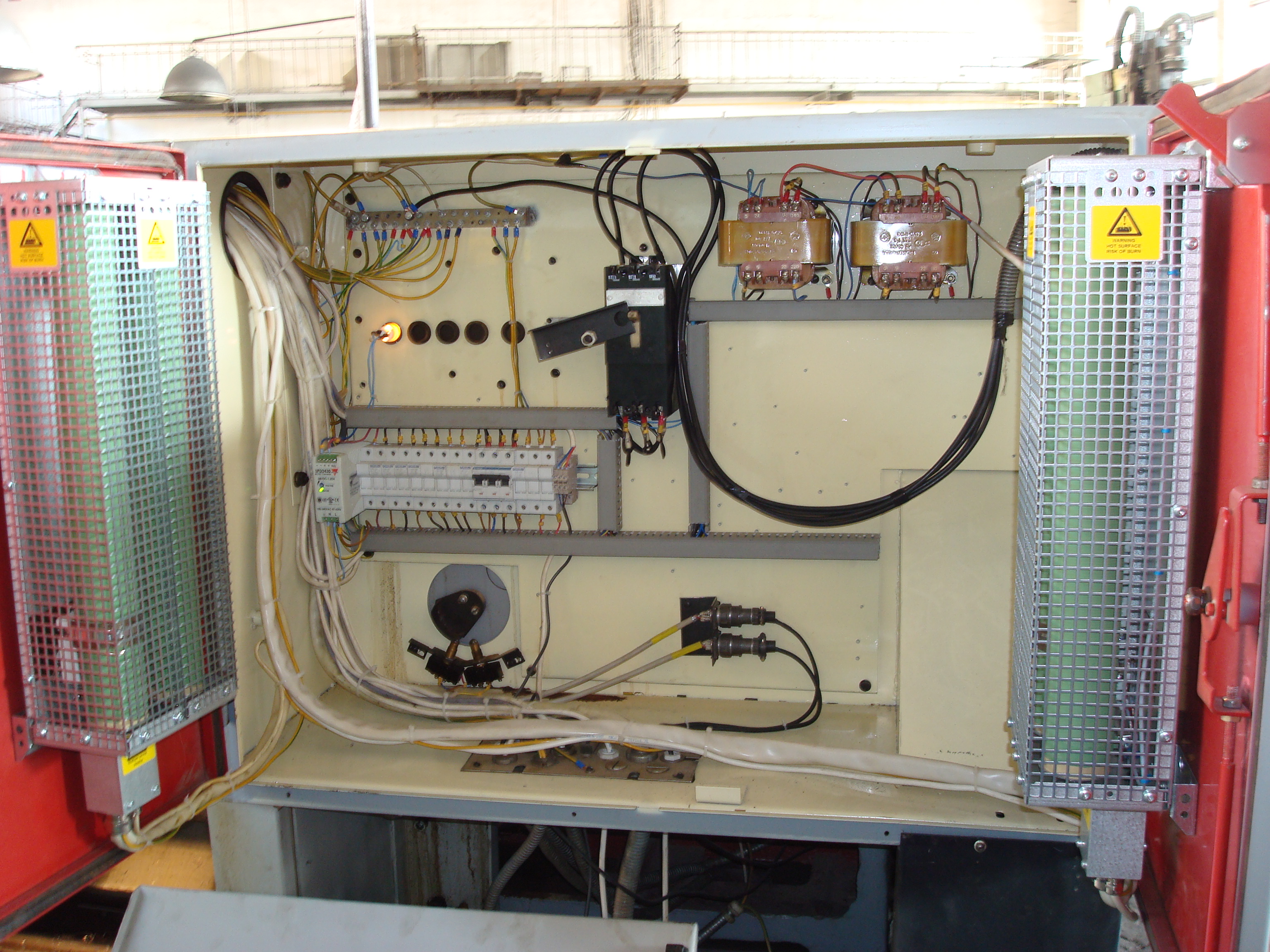 В штатном исполнении мне нравится ещё один прикол - толкатель блокиратора вводного автомата любят выкидывать и через отверстие для него в шкаф лезет СОЖ, а под ним как раз клемник, который 380 от вводного на КМ1 пробрасывает. Получается такой спецэффект, что просто песня ) В первом шкафу вообще с СОЖ все плохо, вон и на фотках рыжие следы от головок винтов...