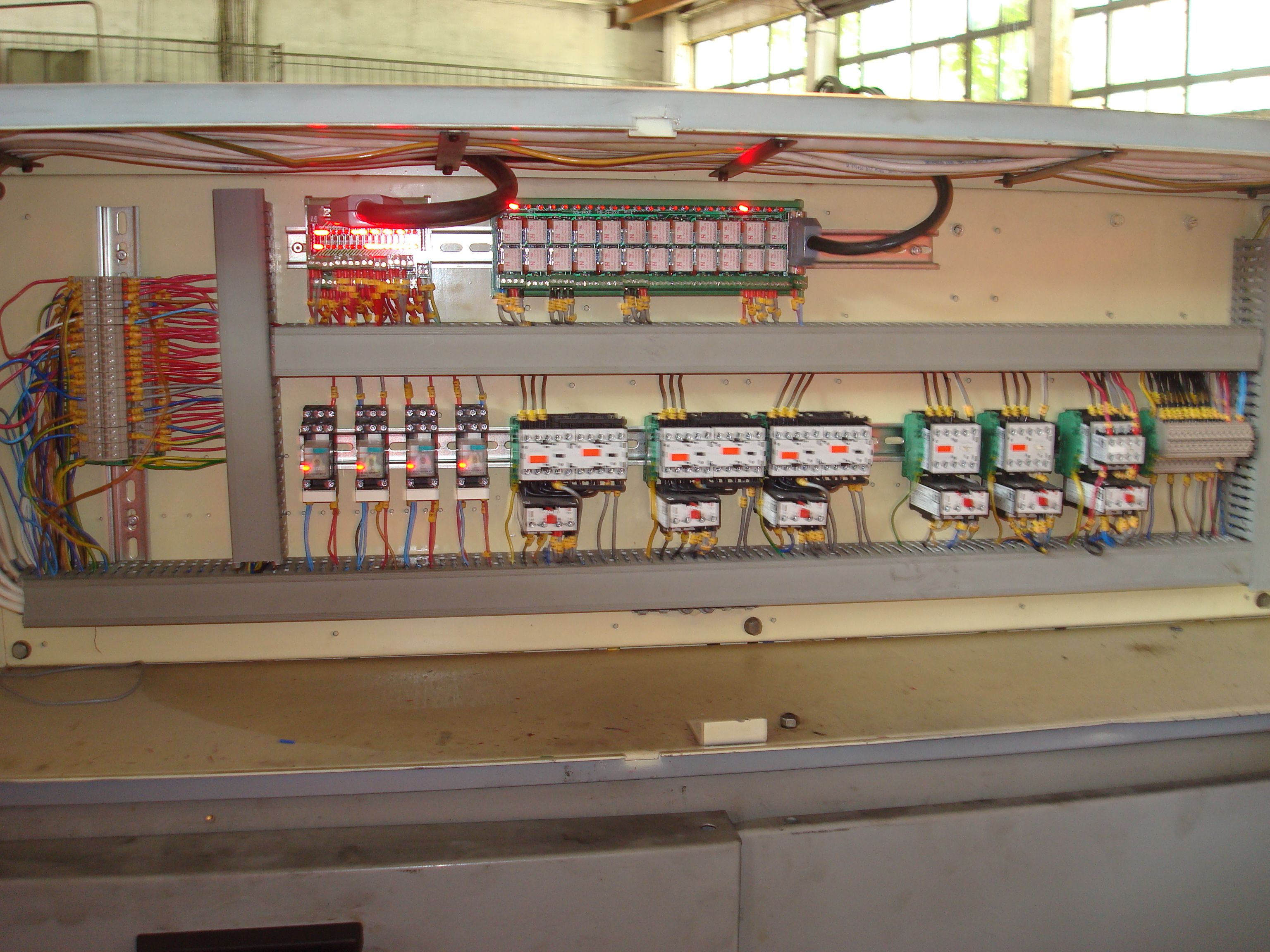 В штатном исполнении мне нравится ещё один прикол - толкатель блокиратора вводного автомата любят выкидывать и через отверстие для него в шкаф лезет СОЖ, а под ним как раз клемник, который 380 от вводного на КМ1 пробрасывает. Получается такой спецэффект, что просто песня ) В первом шкафу вообще с СОЖ все плохо, вон и на фотках рыжие следы от головок винтов...