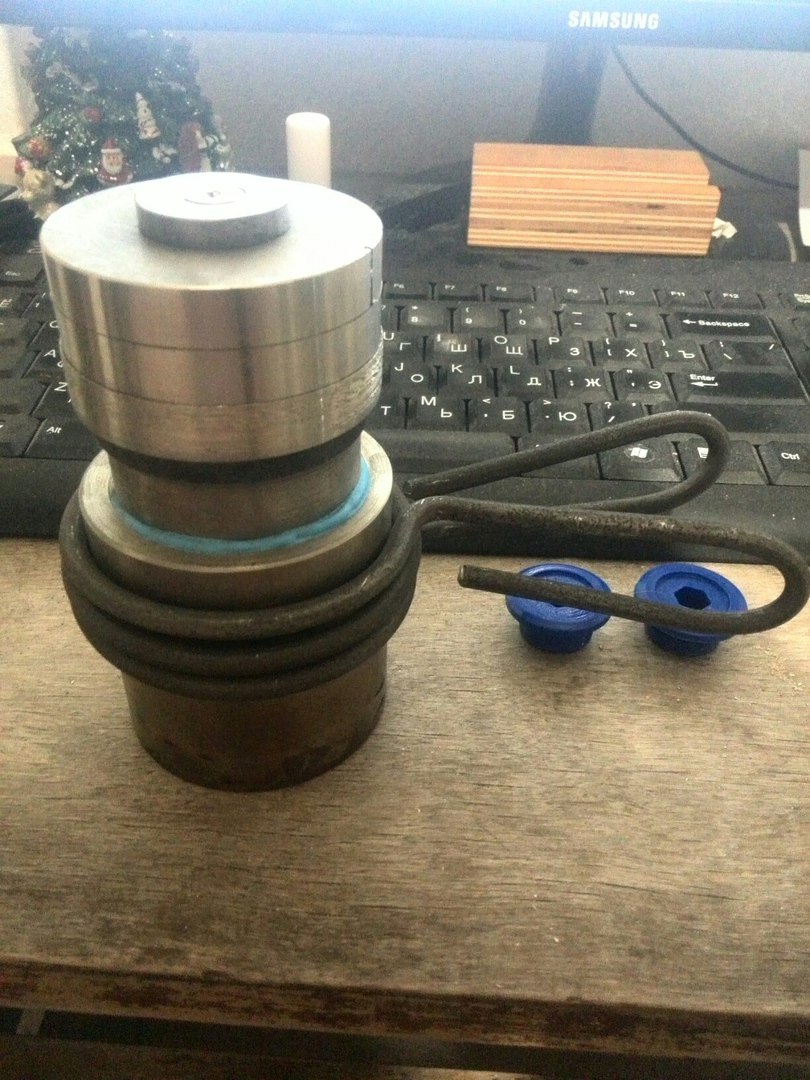 Если мой домкрат на 10 тон выдаст тон 8, то давление в системе должно составить 500кг на квадратный сантиметр. Давил этим устройством.