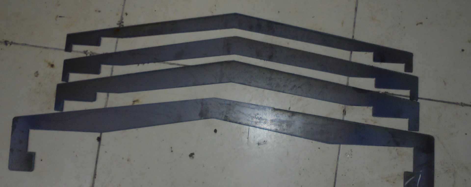 Нарезали на плазме заготовок. Так как нет у нас листозагибательной машины, а нормально в городе не погнут. То решили прорезать V-образной фрезой по месту сгиба и гнуть. Станок делает сам себе защиту, ну или почти первая стружка :)
