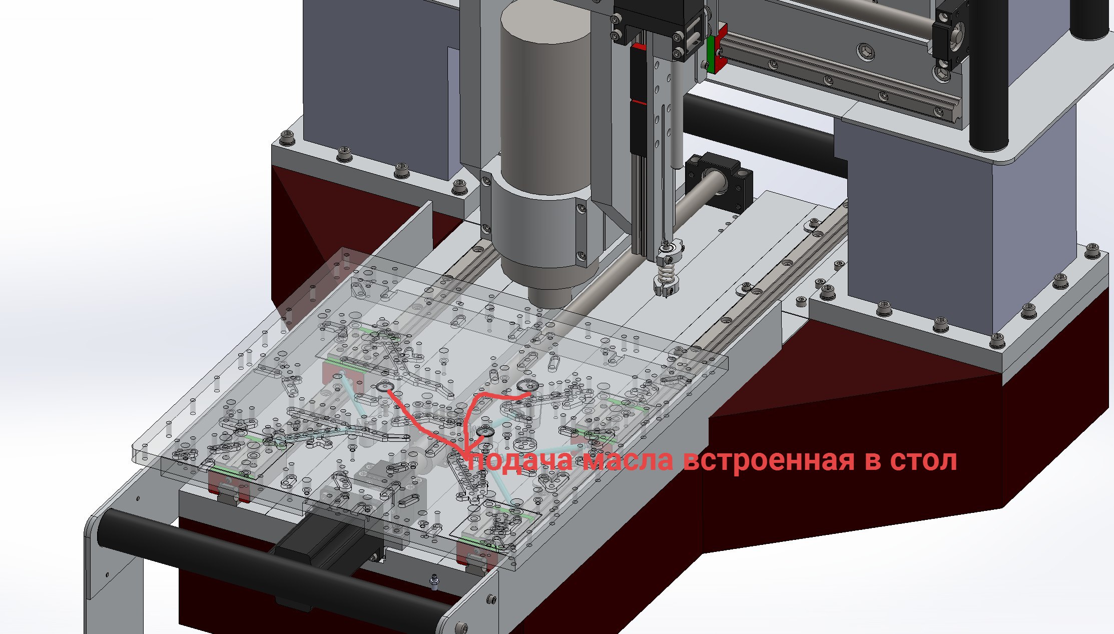 с горем пополам допроектировал систему смазки встроенную в стол.