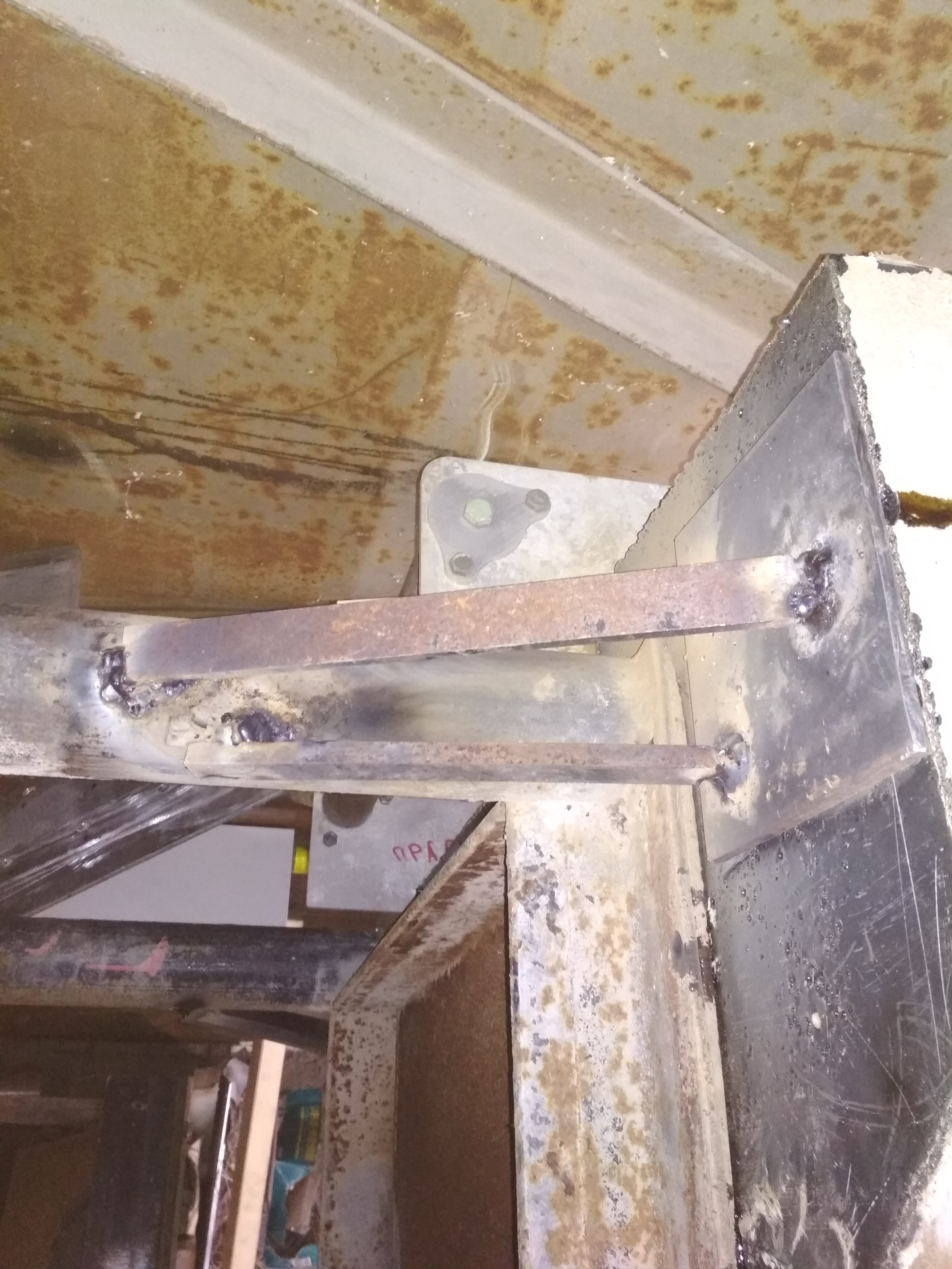 Пока я предпологал из за чего могло ее выгнуть посчитал чтограмотно было бы сделал подпорки под боковины/колонны танка, ибо на них будет приходиться вся основная масса станка а они у меня свисают со стола по краям, поэтому из говна и палок были быстро сварены платформы и по индикатору были поддомкрачены и приварены с резиновыми прокладками для распределения нагрузки.