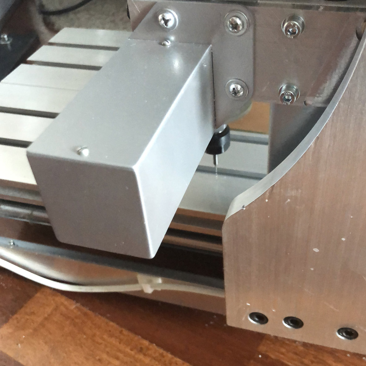 Если выполнить сверление одного отверстия, в точке (0;0) например в текстолите, что-бы были четкие границы, а потом навести камеру и зафиксировать смещение, то удается очень хорошо фокусироваться, в нужной точке, понемногу делаю программу, в которой на видео с камеры, еще накладывается будущая трактория фрезеровки, и на мой взгляд, камера неплохой помощник, но повторная установка требует, заново находить смещение, а для постоянной установки требуется более компактный корпус.