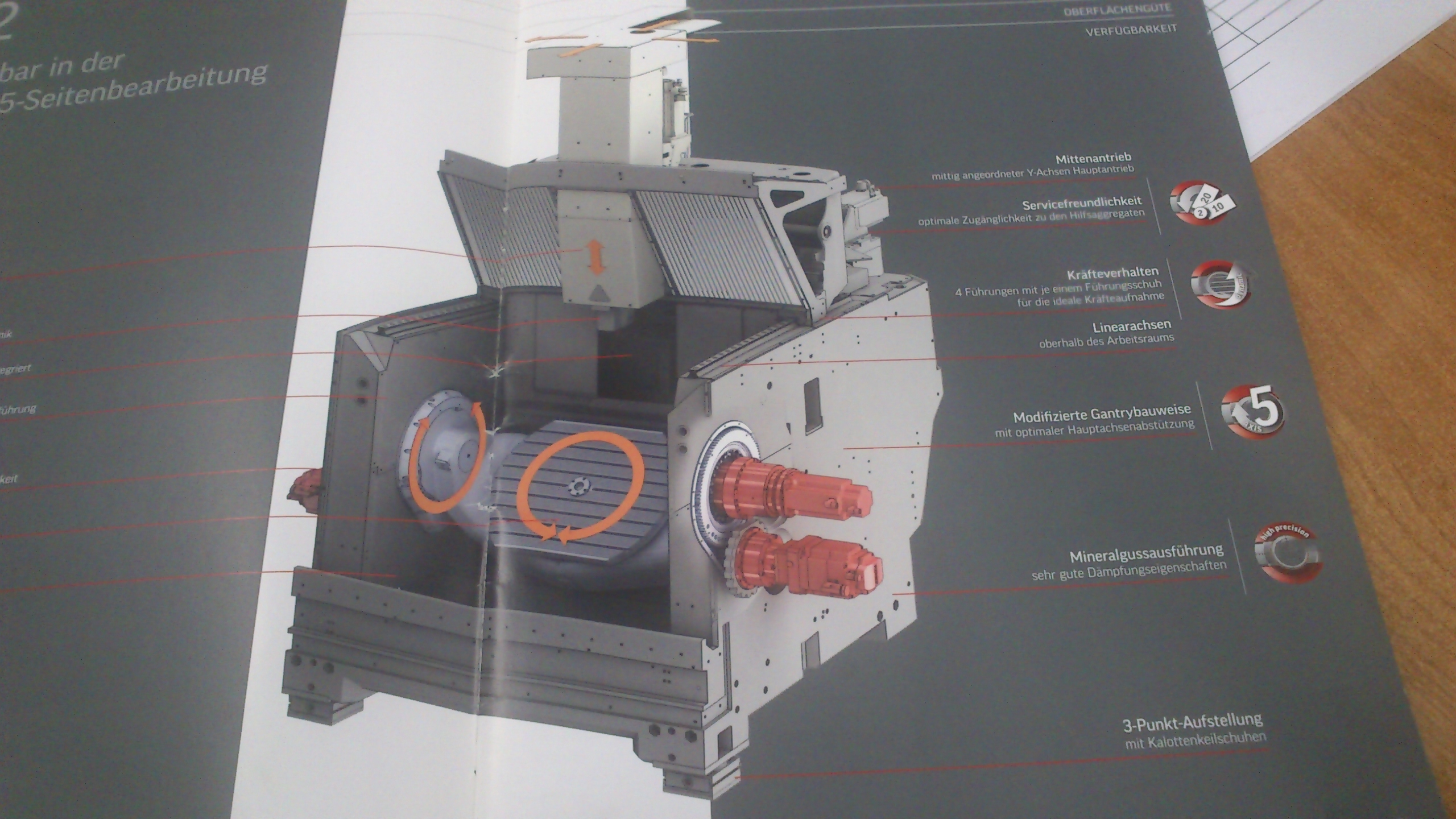 Красные штуки это опция на выбор, или прямой привод на ось или через редуктор(нижний мотор). У нас мотор ниже относительно оси А, соответственно стоит редуктор, кроме этого на второй стороне тоже такая система, т.е. система Tandem drive от кручения стола при одностороннем установе. Вы просите что хотели бы увидеть, а я сделаю фотки.