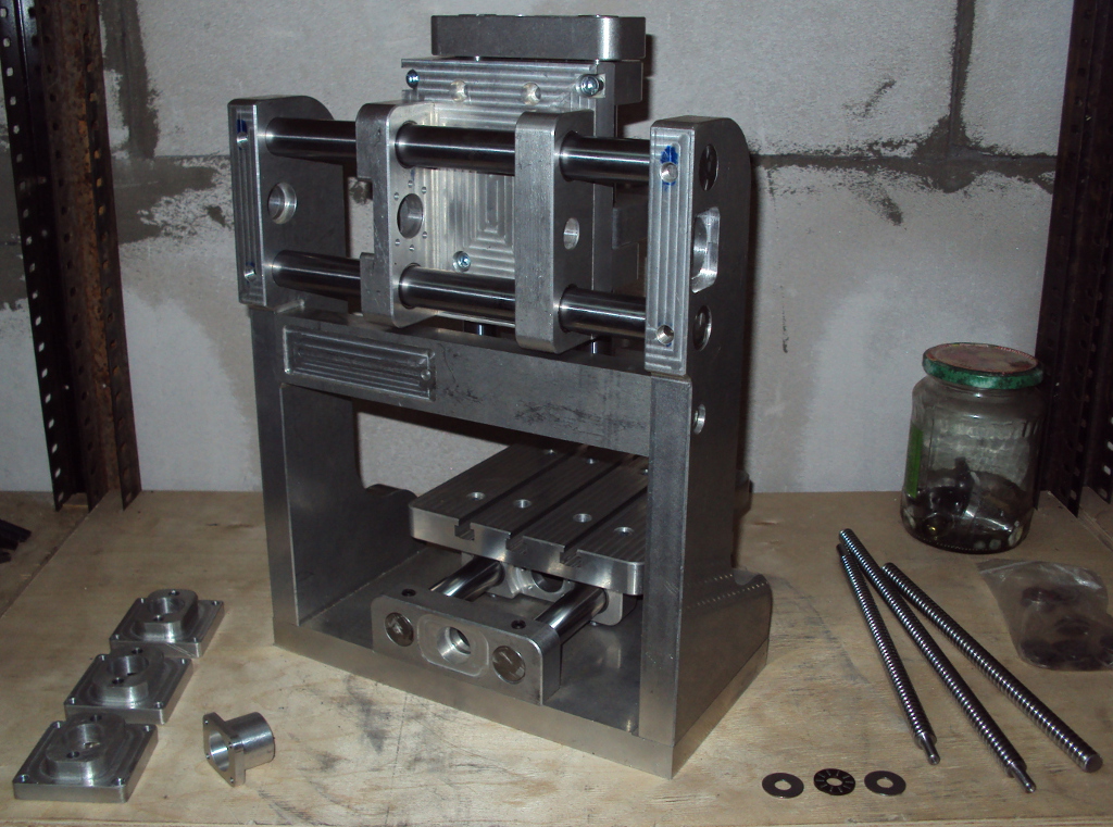Выставляю на всеобщее обозрение проект настольного станка для работы по различным материалам, в основном конечно по цветным металлам (алюминию, бронзе, латуни, титану и т.д.) и в единичных экземплярах можно обрабатывать сталь.