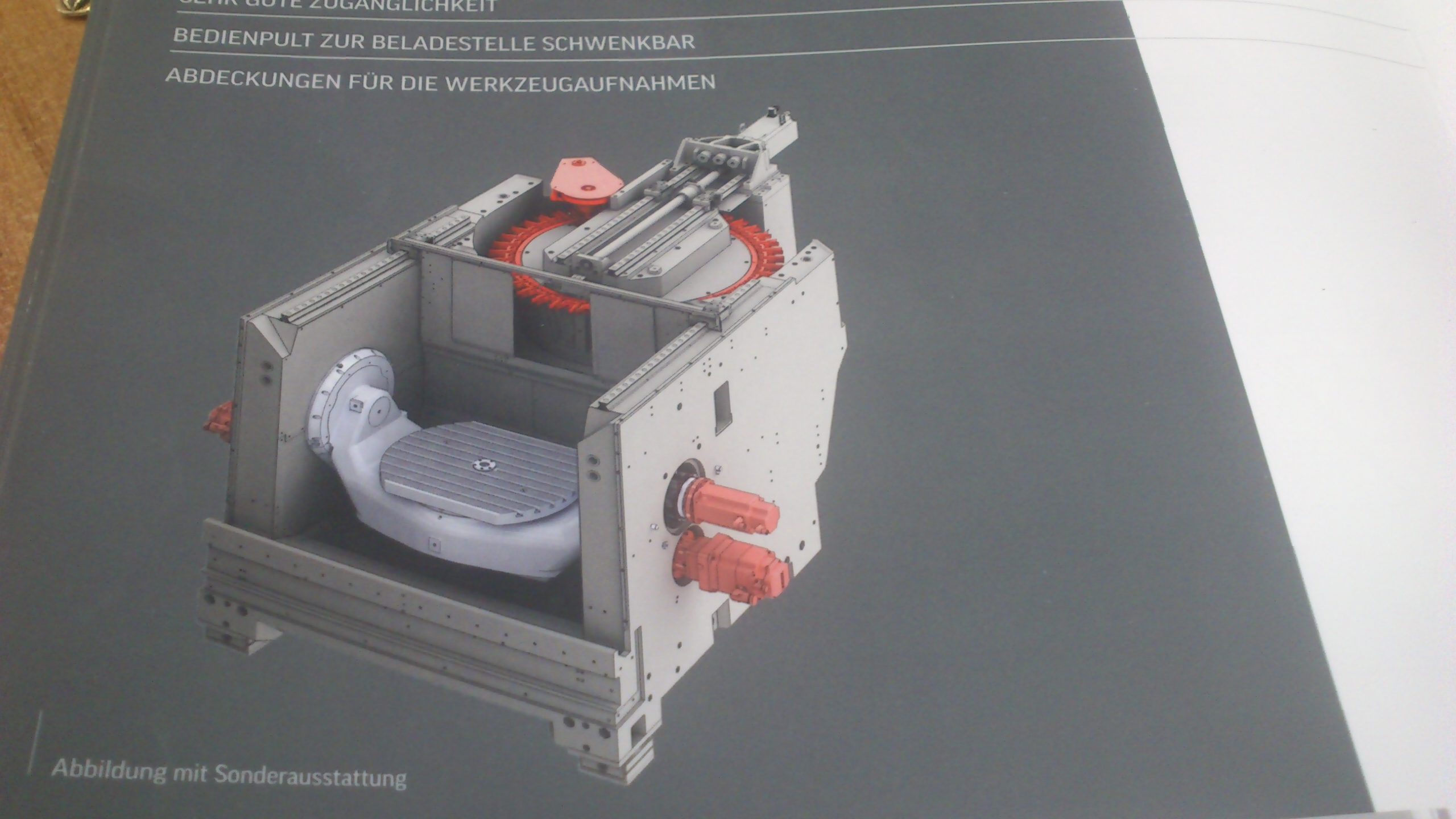 Красные штуки это опция на выбор, или прямой привод на ось или через редуктор(нижний мотор). У нас мотор ниже относительно оси А, соответственно стоит редуктор, кроме этого на второй стороне тоже такая система, т.е. система Tandem drive от кручения стола при одностороннем установе. Вы просите что хотели бы увидеть, а я сделаю фотки.