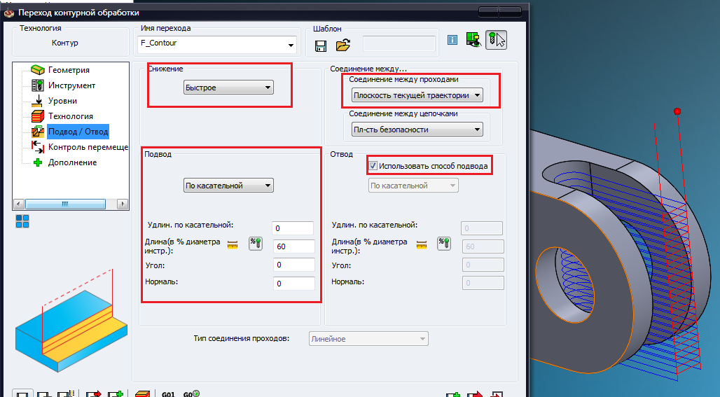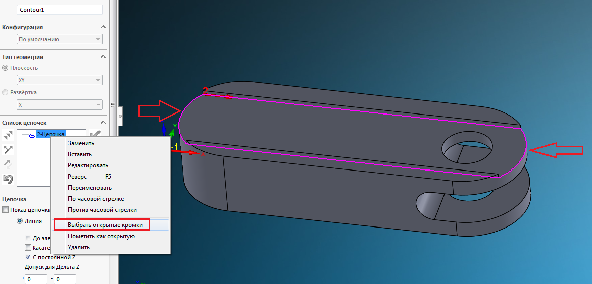 Frezer_PU писал(а):Попробуйте выбрать нужный контур и пометить боковые кромки открытыми и после установив в настройках перехода галку открытый карман чтоб обработка начиналась извне !