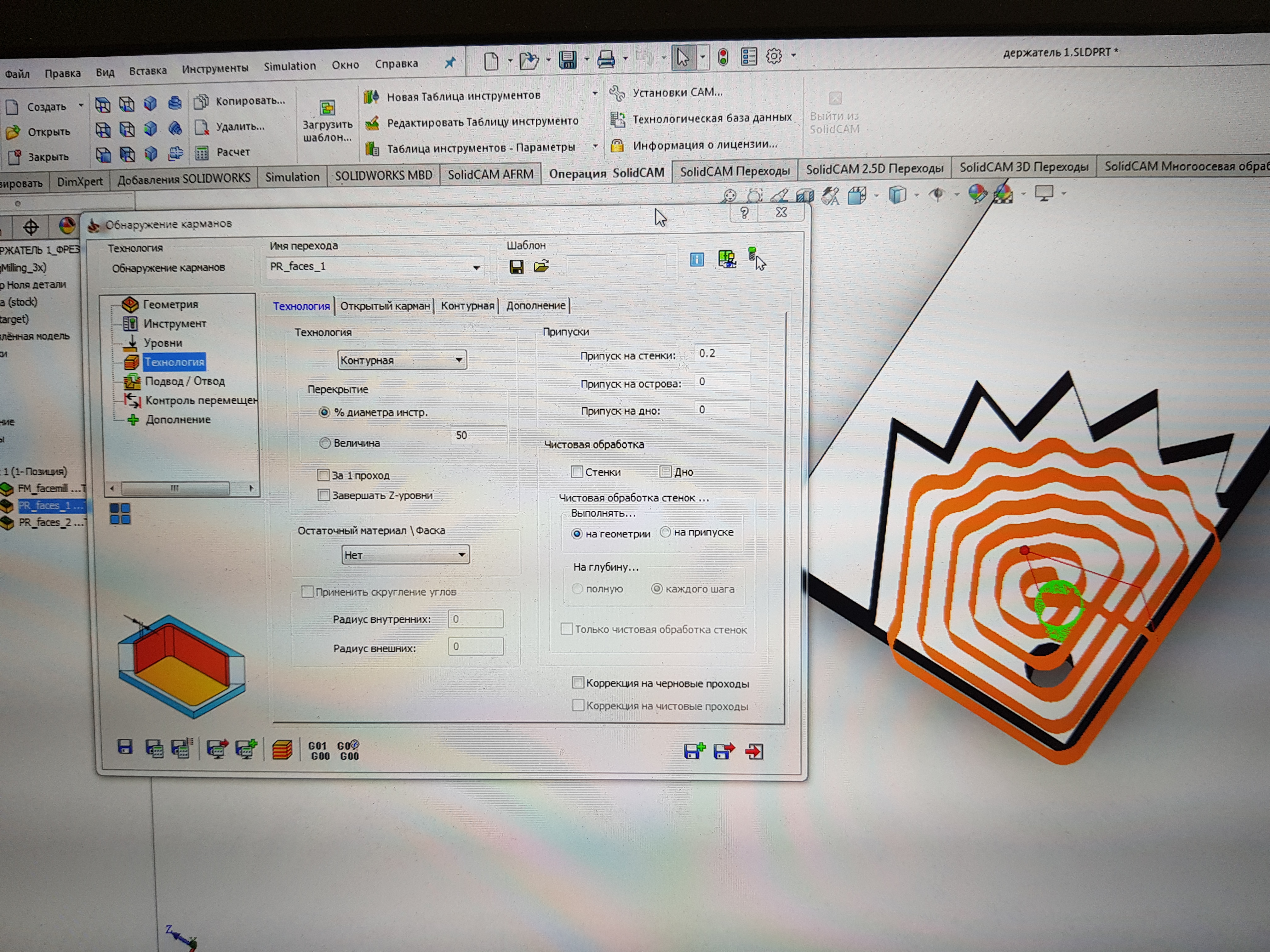 Создал стратегию обнаружение карманов, карман вот такой: Первую обработку задал фрезой 4мм с припуском 0.2 Вторую обработку фрезой 0.5 мм доработка, геометрия та же, в доработке указал что прошлая обработка велась фрезой 4мм с припуском 0.2 В результате получаю острова от невыбранного материала...