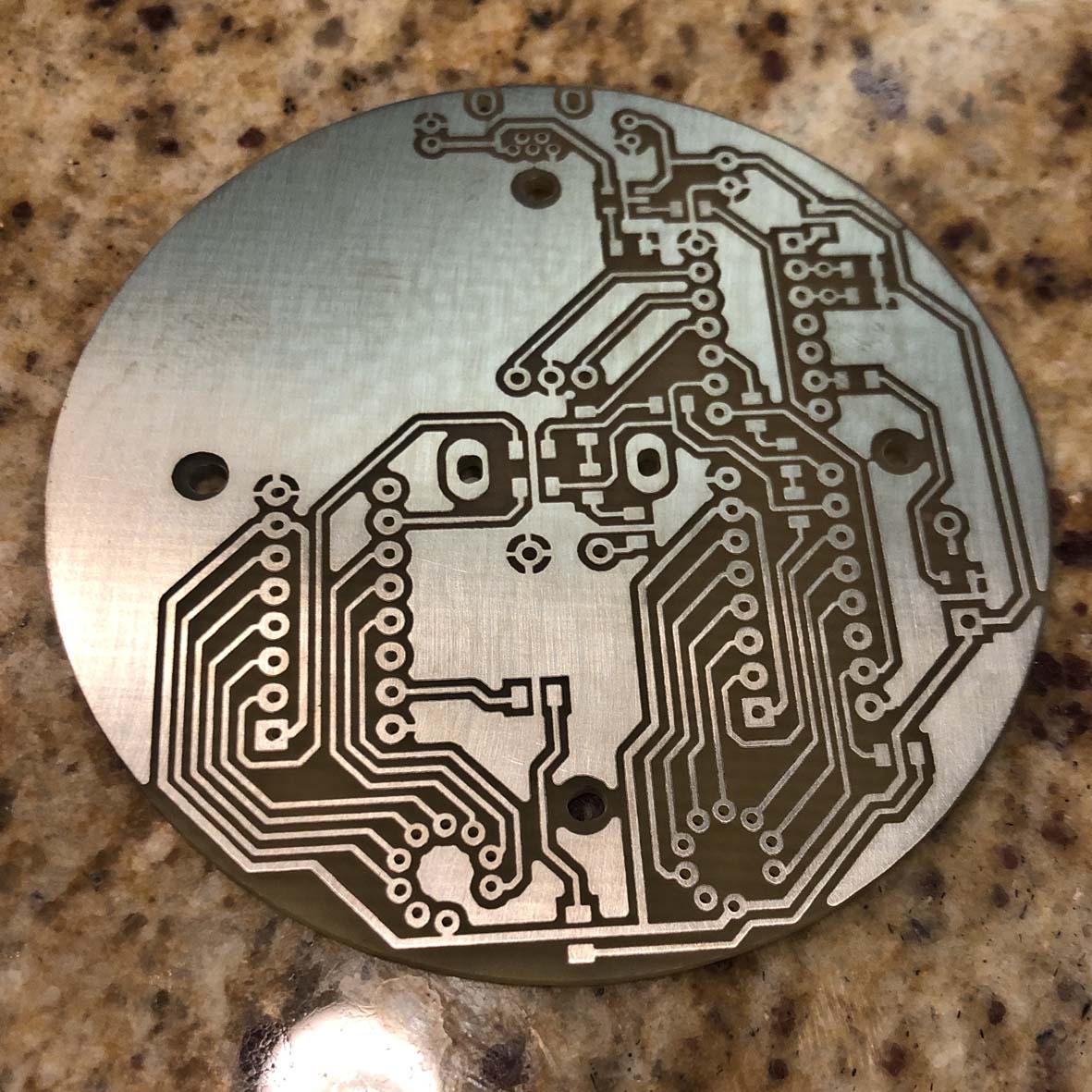 Кстати, может интересно будет кому. Поскольку делать плату с фрезеровкой меди долго и нудно, то решил сделать фотоспособом, а потом просверлить и обрезать на станке. Слава богу что Диптрейс позволяет компенсировать деформацию шаблона от нагрева. В результате шаблон уменьшается в длину и увеличивается в ширину. После замеров и корректировки я получил практически идеальный шаблон и сделал по нему плату. Ну а потом при помощи камеры сделал трансформацию матрицы по 3-м точкам, просверлил и обрезал. Получилось достаточно неплохо для первого раза. Конечно есть небольшие косячки, но в дальнейшем я от них избавлюсь. Если это интересно, то когда буду делать еще плату, могу снять подробную инструкцию.