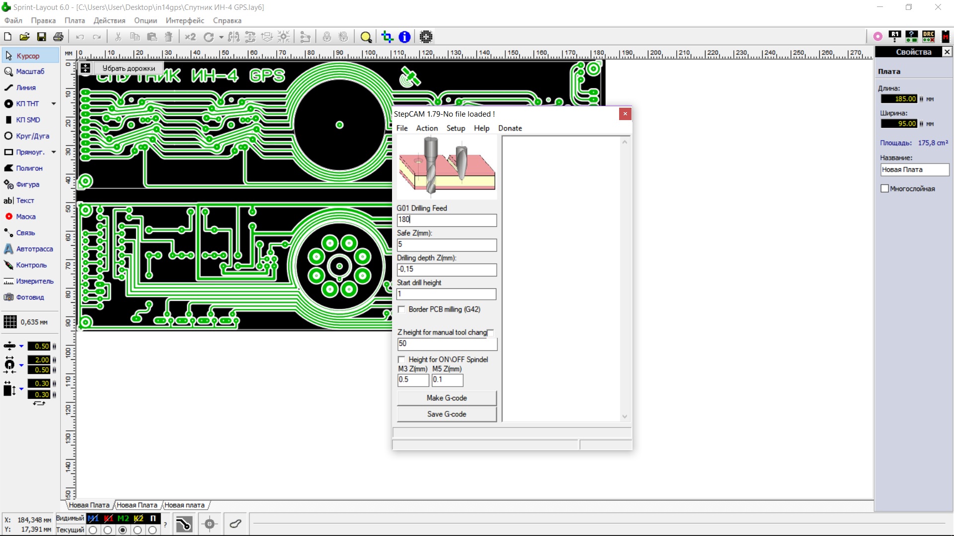 Я последнюю плату делал в коппер каме 2016г. Так вот эту плату у меня станок обрабатывал 5ч одну сторону и 6ч другую :shock:(размер платы 130х65мм) .