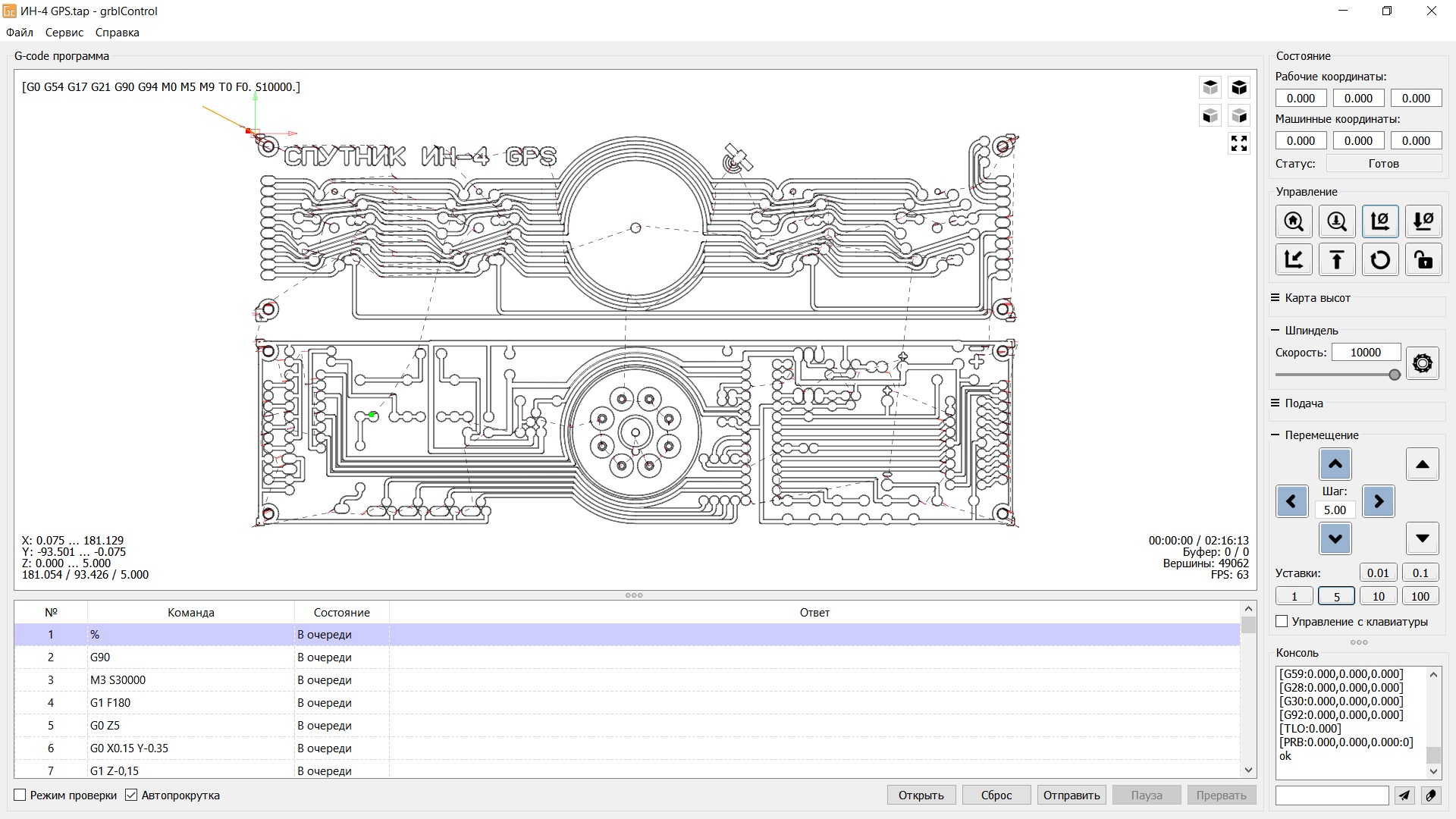 отправляю в работу - фреза летает в 5мм над текстолитом