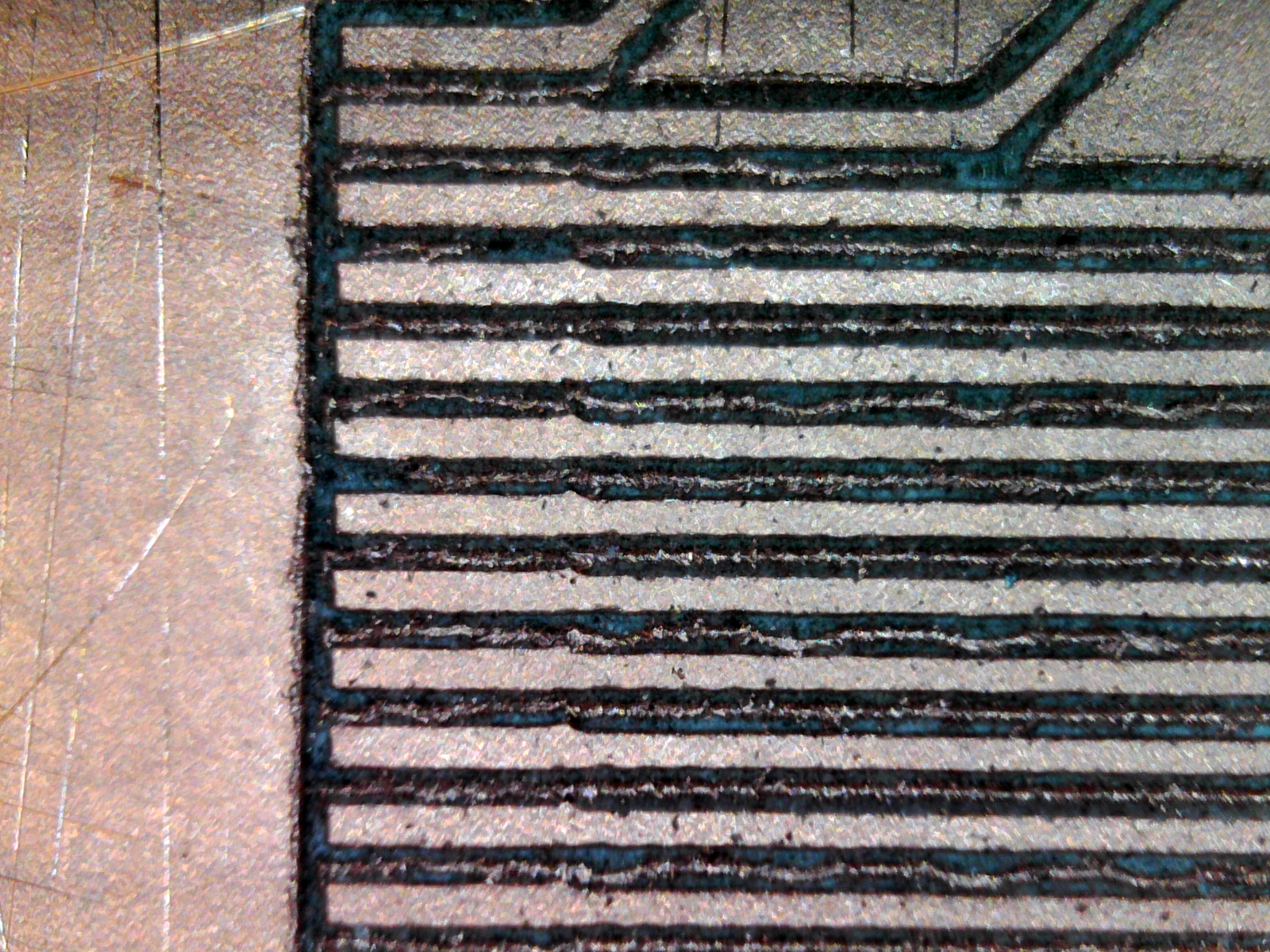 В некоторых местах медь не полностью выбрана.