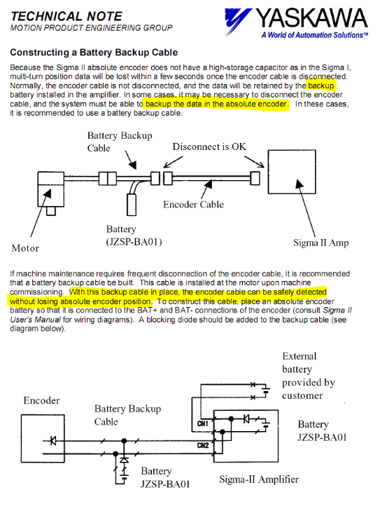 SVP писал(а):Батарейка в кабеле я так понимаю, чтобы его выдергивать из сервопака без обесточивания энкодера. (фиг знает вообще зачем их разъединять) Что плохого при его обесточивании в состоянии покоя происходит я так и не понял... Считает абсолютный энкодер что-то или нет во время, когда сервопак выключен, тоже