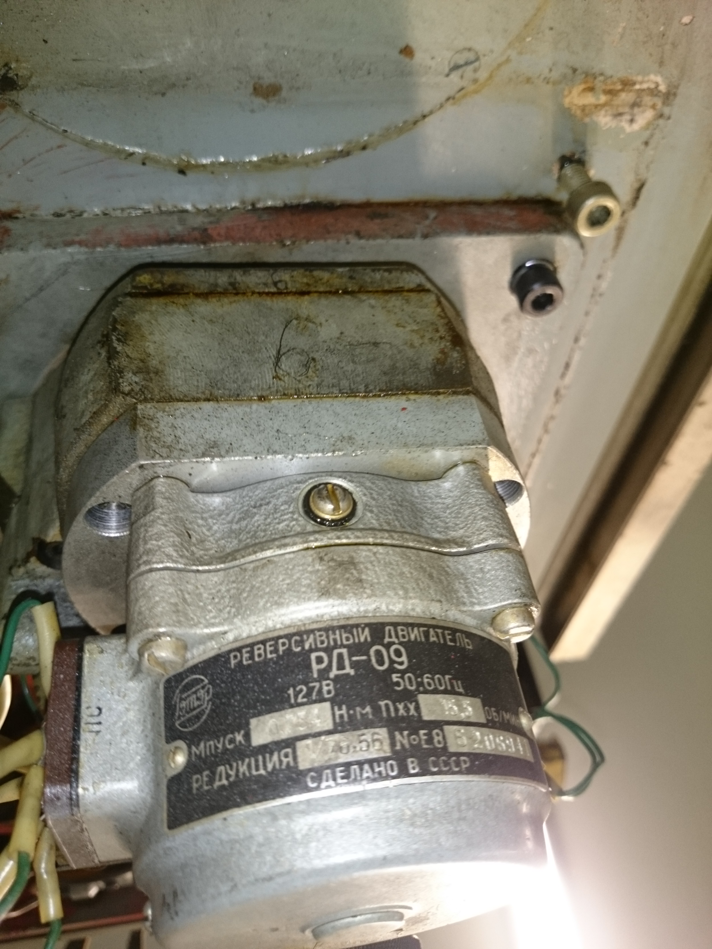 вот внешняя часть коробки: из нее торчит редукторный движок и вот это чудо сельсин...