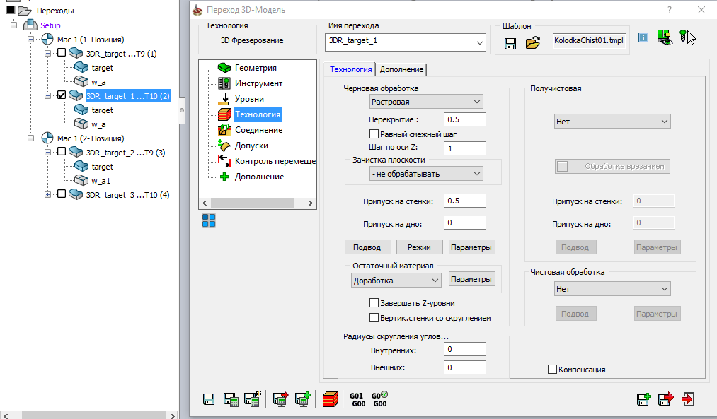 Делаю настройки, как вы показываете в видео, создаю обработку детали, закрываю.