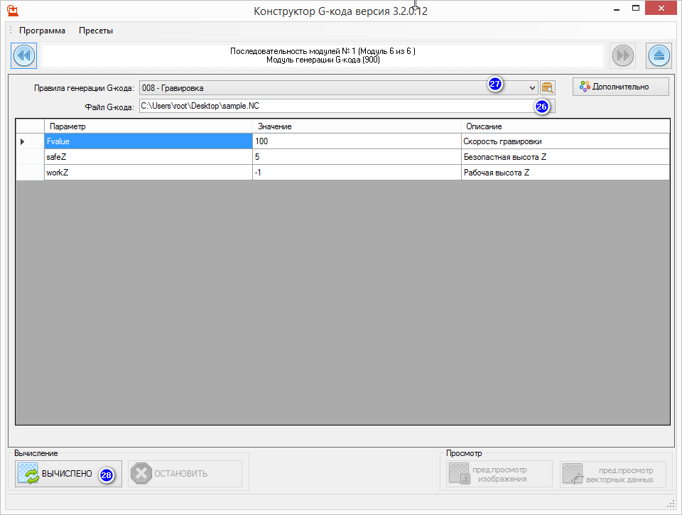 Подскажите, что я не настроил. Программа - "Конструктор G-кода версия 3.2.0.12".