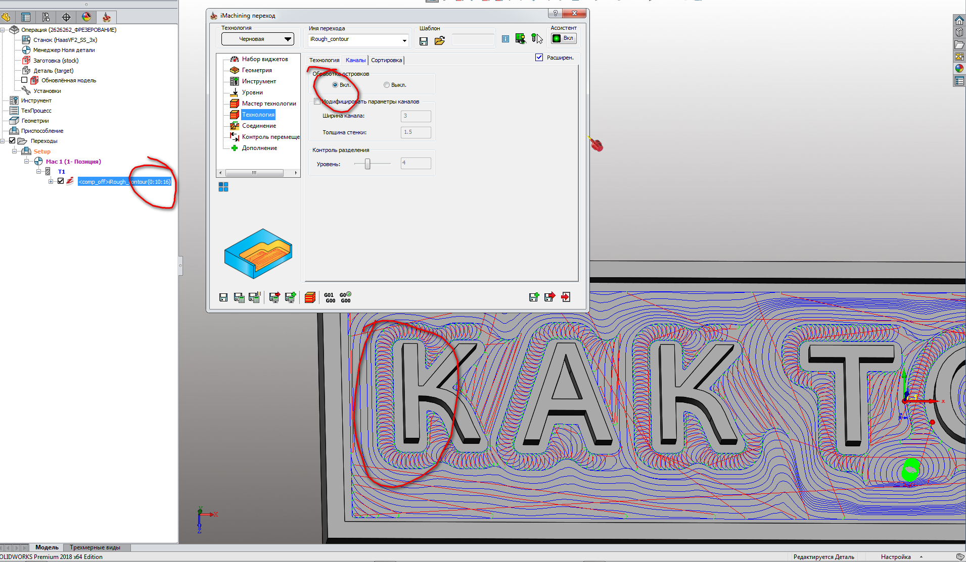 выключи обработку ОСТРОВКОВ ( технология----каналы--обработка островков)