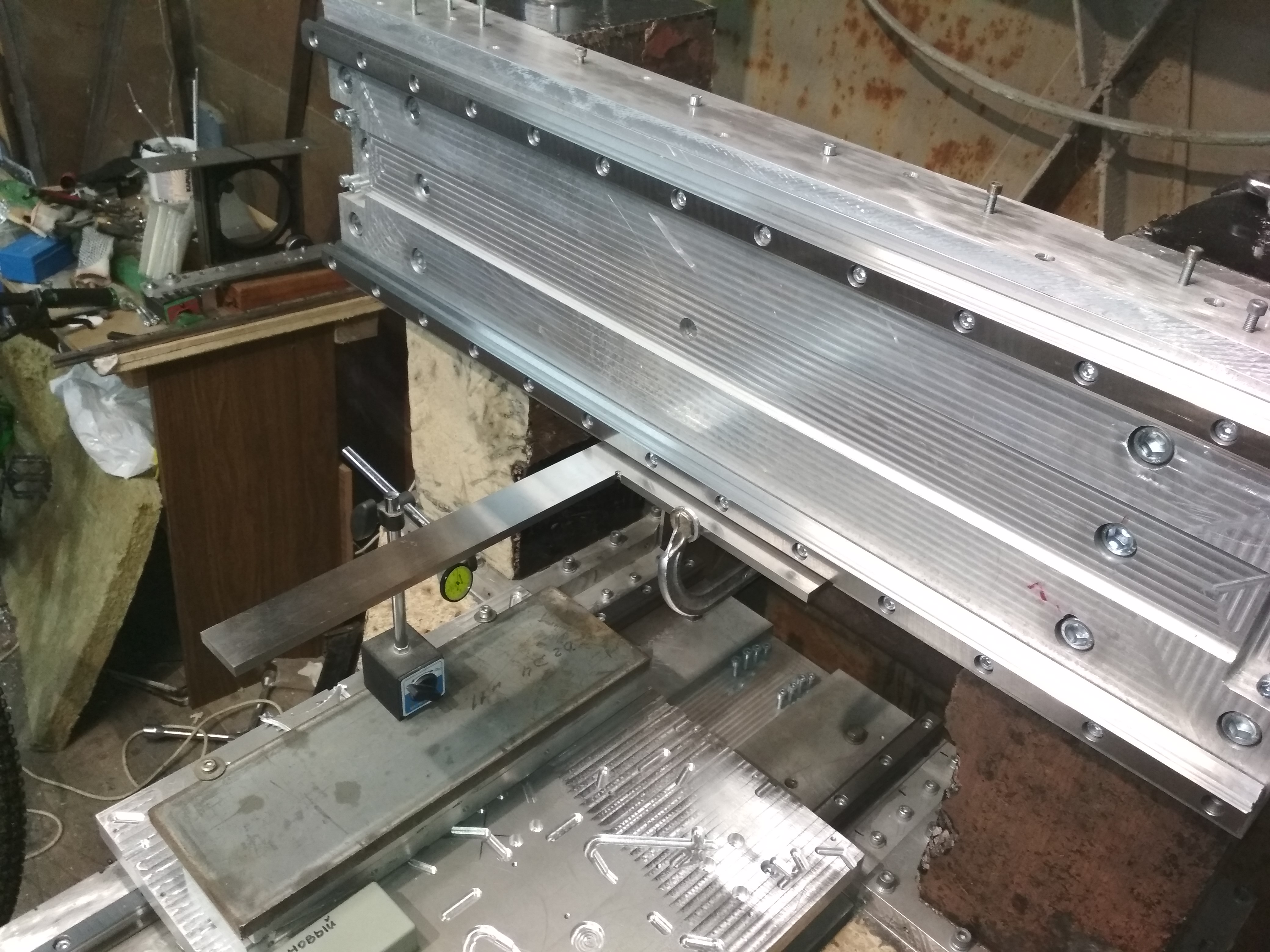 Процесс идет. Удалось наконец положить рельсы на балку портала, не без приключений правда с допиливанием досверливанием и прочим, но вытавил . винтом не больше 0.05мм на 1 метр, кривизна не больше 0.015 мм, перпендикулярность постарался вывести в 0 но как будет на самом деле непонятно пока, вдруг под уголок пылинка или стружка попала. Вобщем самые важные задачи выполнены, ради чего покупалось столько лорогостоящего поверочного инструмента.