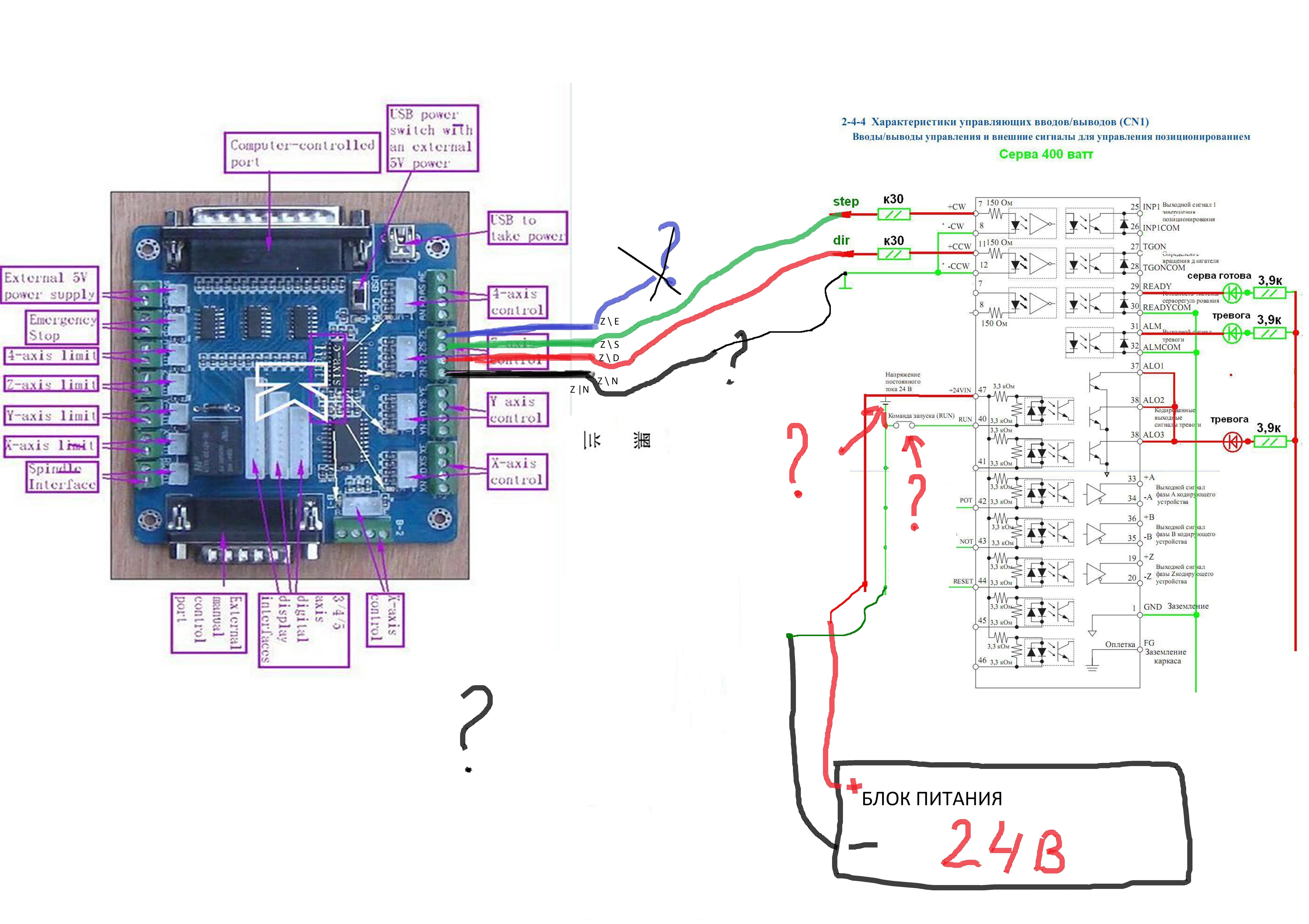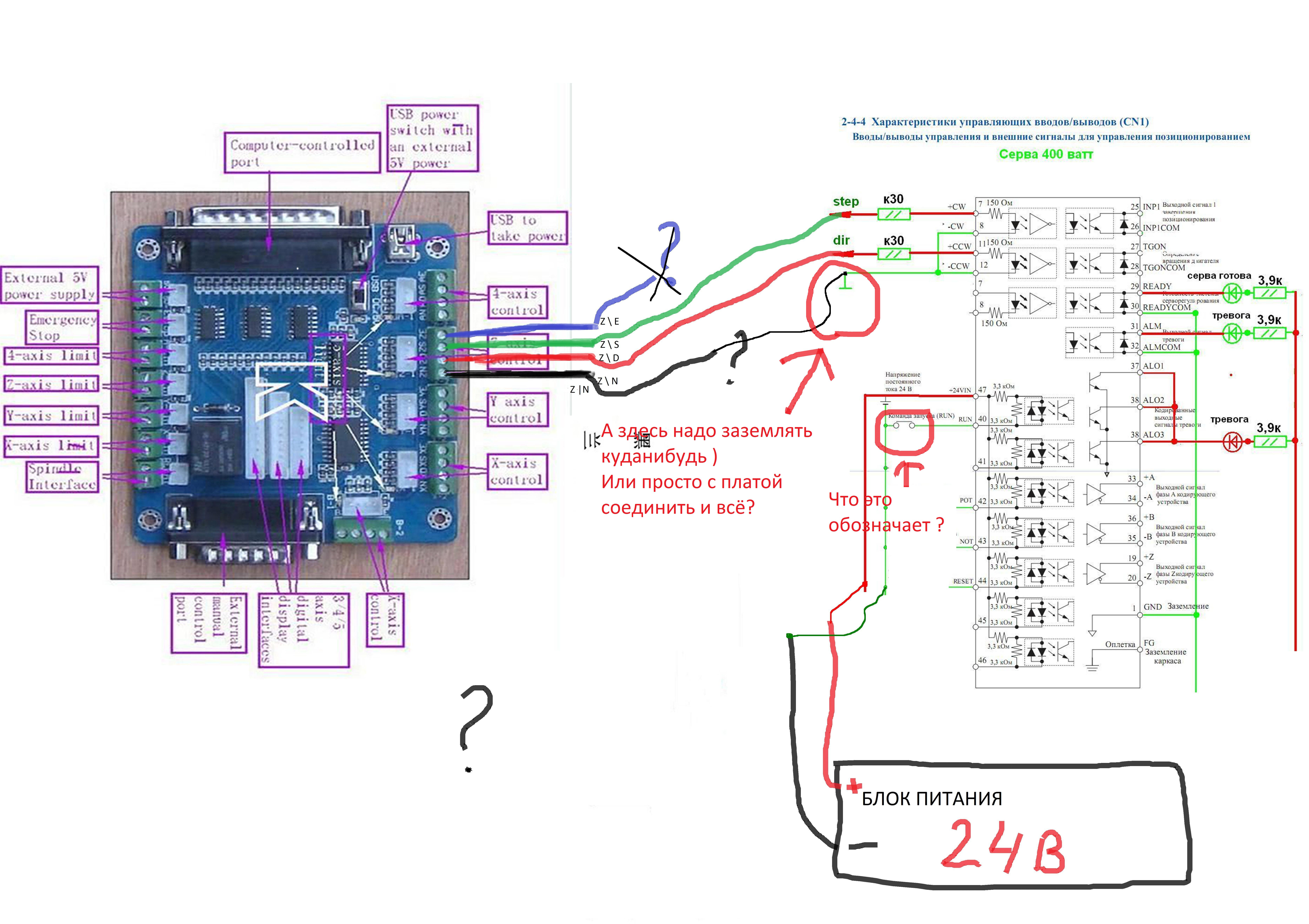 Я нашол как отключить концевики, на серве загарелось run мотор шипит, но по программе не работает хотя на оптопривязке индикаторы на оси х и у мигают ,типо сигнал идёт , мотор стоит хотя рун горит?