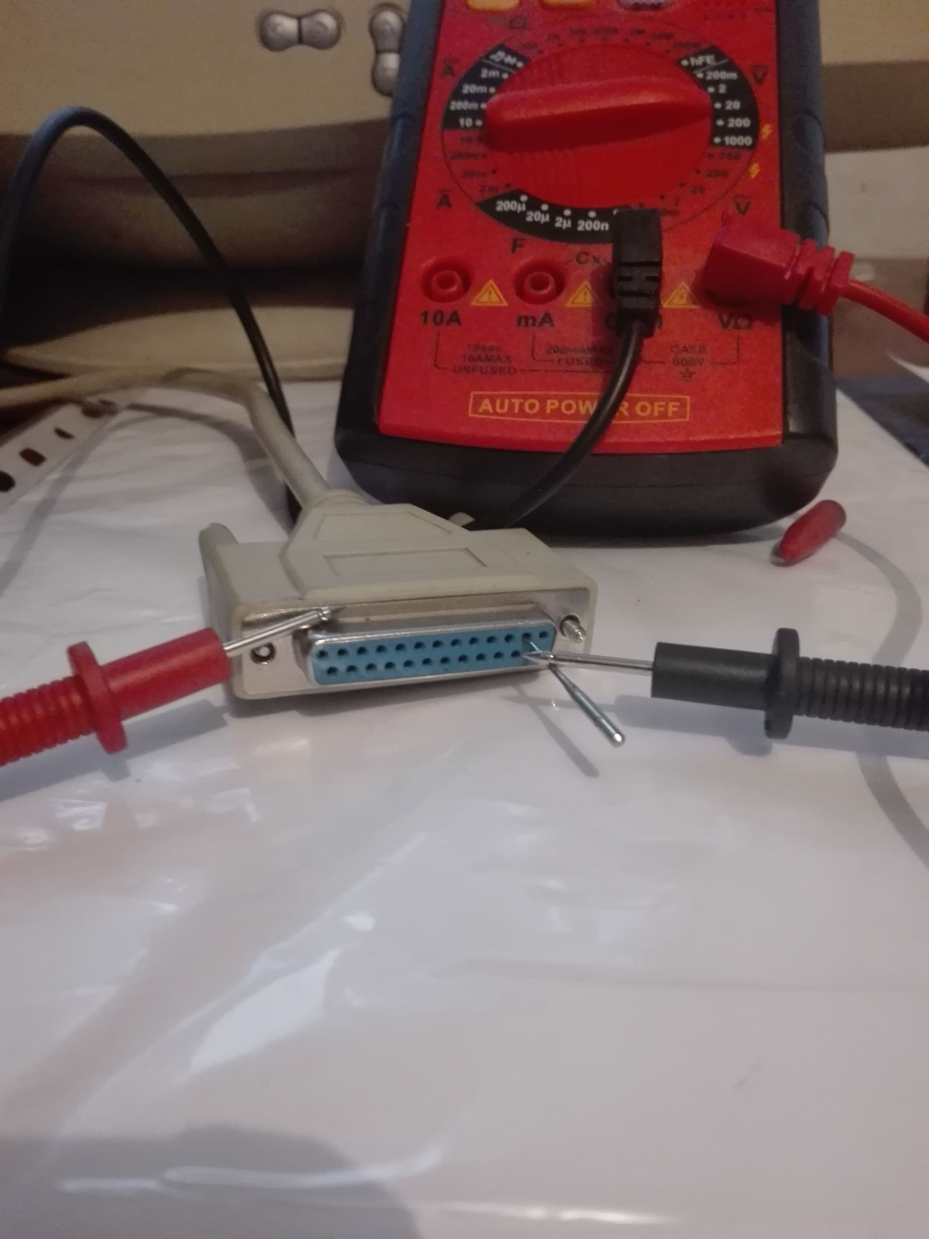 В режим проверки диода когда щупы замкнул он пищит и проверить кабель. А в программе ты включал и выключал пины ? я так понял изменений никаких.Rolkis писал(а):Кабель прозвонил.Все пины показывают примерно 0.01 КОм.