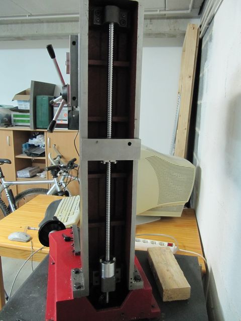 Винт пока никак не обработан, надо бы с подшипниками определиться. На колонну с двух сторон опоры, внизу один радиально упорный, второй ниже радиальный для поддержания усилия ремня на мотор, сверху достаточно будет радиального?
