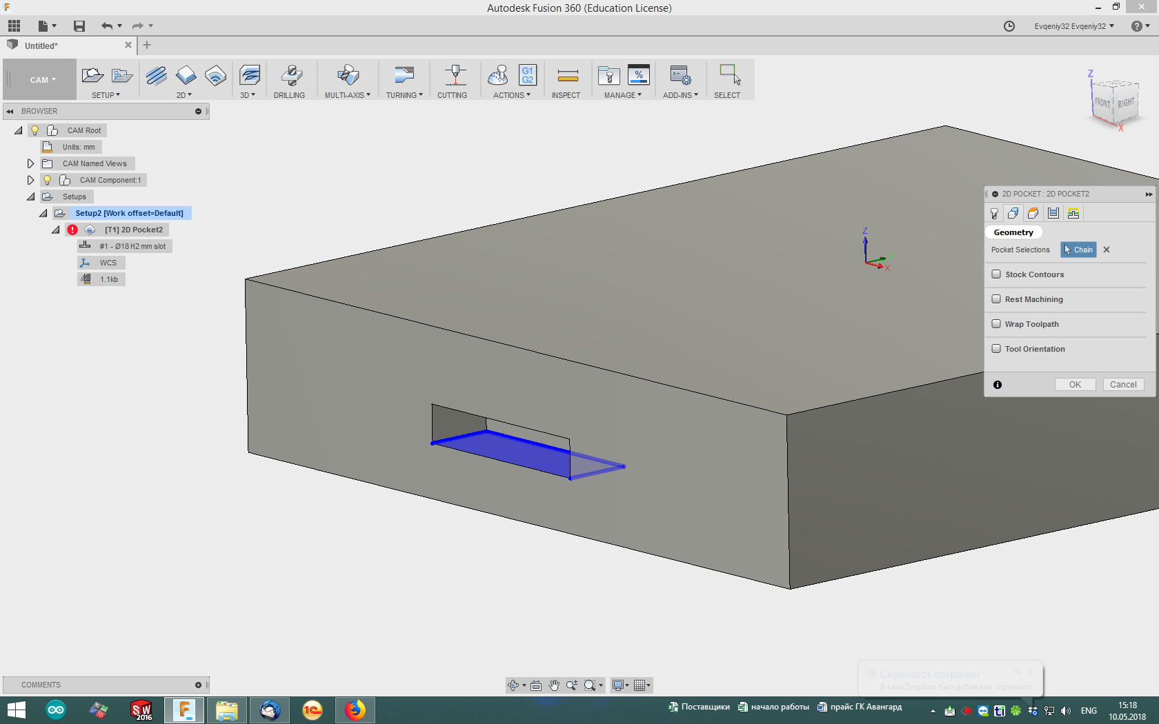 Подскажите, как Т-фрезу загнать сбоку в заготовку чтобы там вырез сделать (во вложении). Пробовал разное 3d - максимум по поверхности поерзал, а сбоку никак не идет. Я пытался в геометрии selection указать, но там можно выделить только верх/низ и боковушки отверстия (нельзя ни входное отверстие выделить ни заднюю его стенку), возможно я вообще что то не то делаю.
