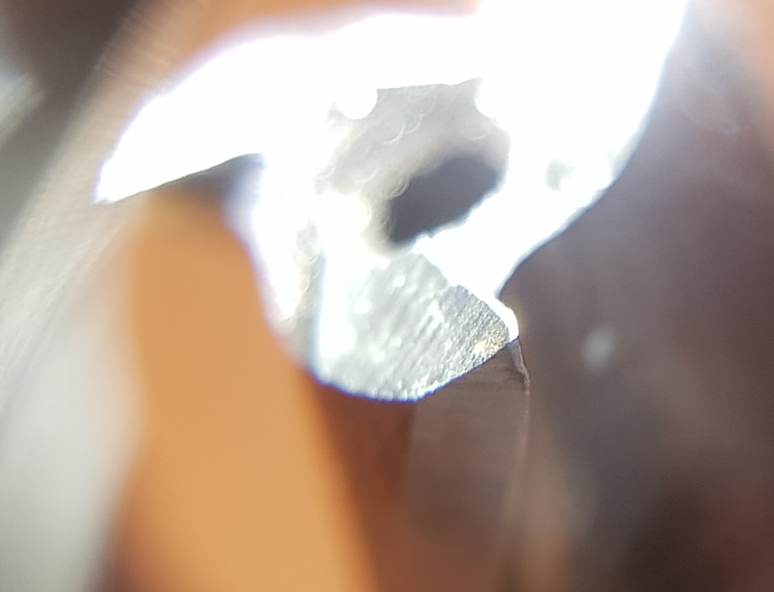 Микроскопия кромок показала что скорость резания велика на кончике фрезы - его, этот кончик отпускает и он начинает стачиваться.