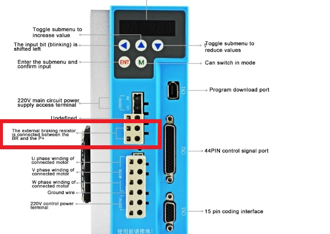 туда подключается тормозной резистор,а сигналы управления к CN2