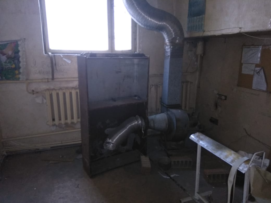 Рядом в помещении через стенку к форточке "прикручена" вытяжка со шкафом (видимо, для покраски) на суровом трёхфазном движке на пару киловатт.