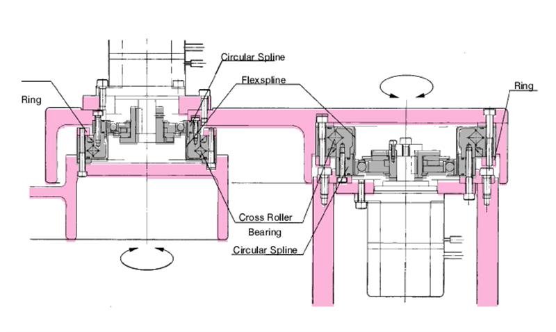 Вот типовые конструкции сочленений ( взято здесь http://www.harmonicdrive.net/products/gearheads/ )