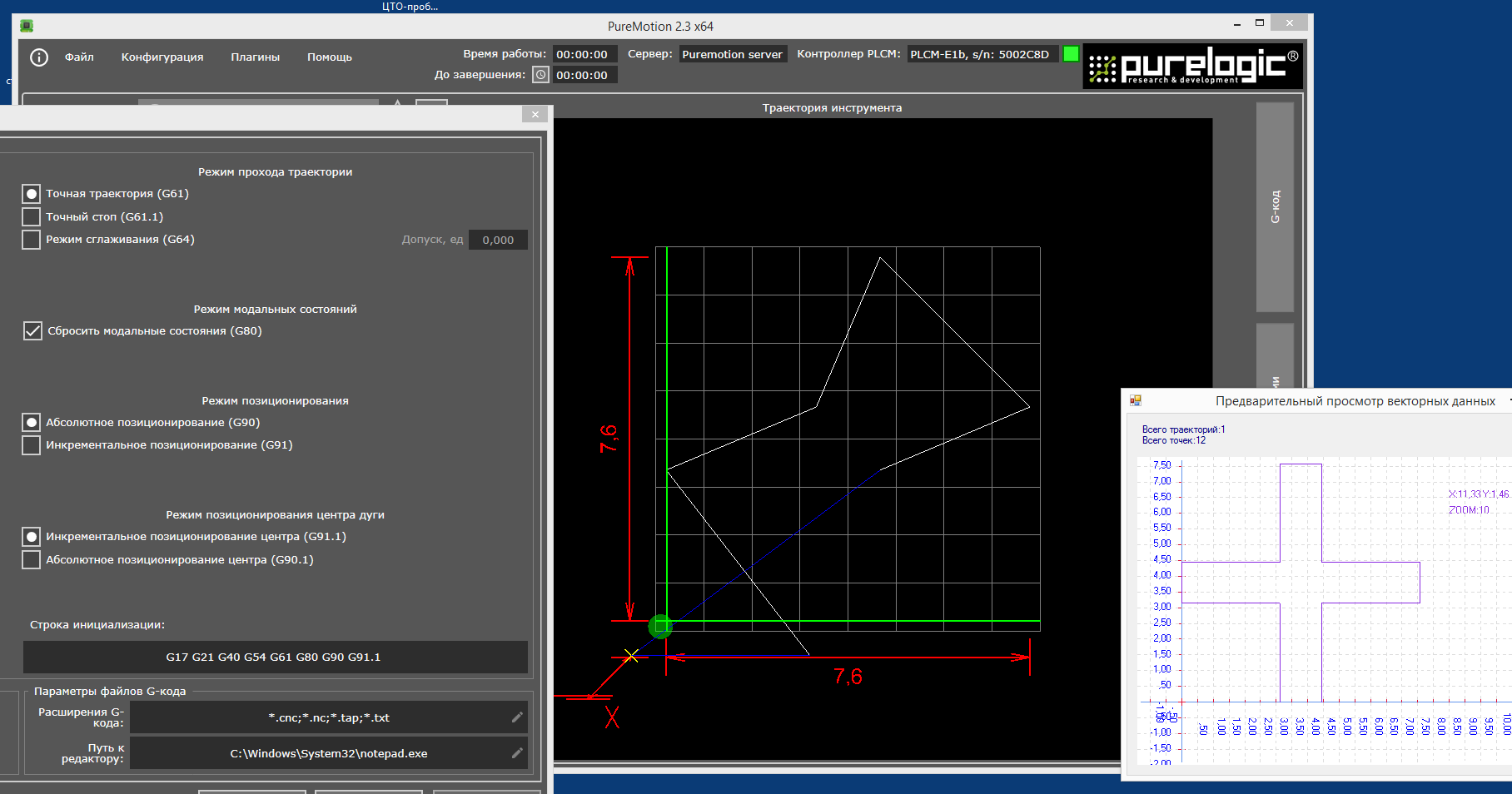 Возможно, Вы экспериментировали с настройками сглаживания. Дело в том, что настройки сглаживания, которые Вы здесь привели, применяются только при переинициализации движка, т.е. при старте системы. Это влияет на строку инициализации, не более. Самый правильный вариант - указывать сглаживание непосредственно в УП, а не полагаться на параметры по умолчанию. Попробуйте поставить G61 прямо в УП, либо перезапустить сервер PureMotion.