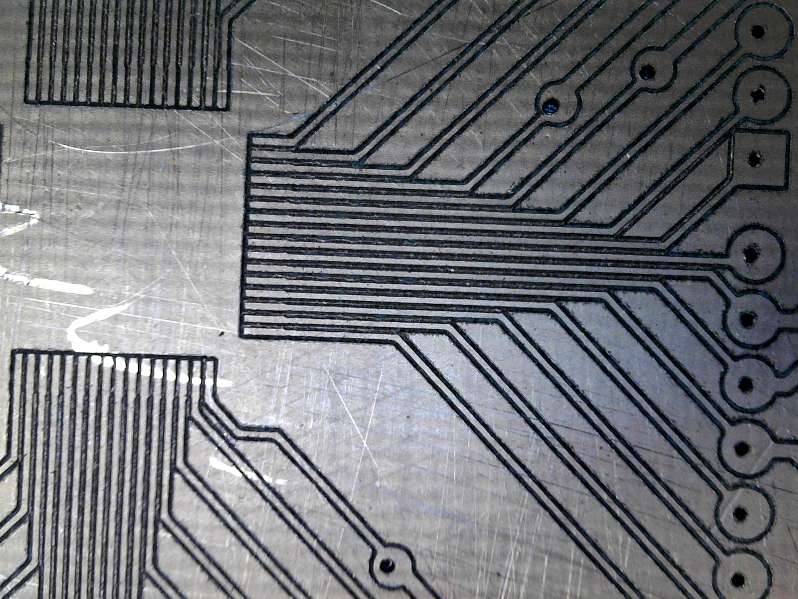 Основной целью эксперимента ставилось выяснить возможности станка. Дорожки на плате 0,23мм. Между дорожками 0,2мм.